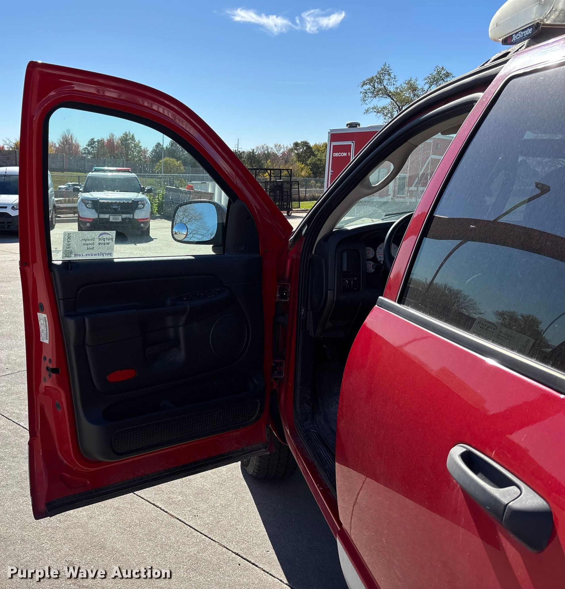2005 Dodge Ram 1500 Quad Cab pickup truck. Miles: 76,676 on odometer, VIN: 1D7HU18D55J577988. Engine Displacement: 5.7L, Cylinders: 8, Fuel type: Gas. Transmission Automatic, Four wheel drive. Interior AC, Heat, Seat: Power driver, Heated mirrors, Power windows, Power locks, Cruise control, Brake controller. Features Bed Box bed. Tires Size: 245/70R17. Notes Non-operational tailgate. Nebraska title. Title distribution may be delayed up to 14 days from verification of funds. City of Lincoln Fire & Rescue. Lincoln, NE 68521