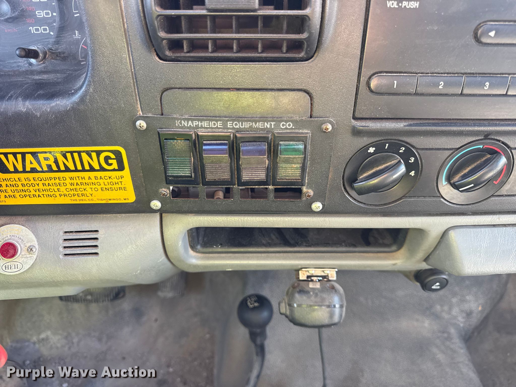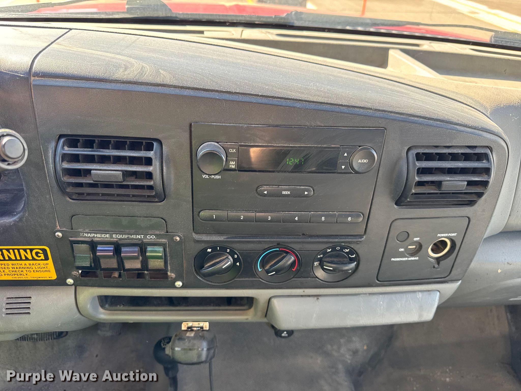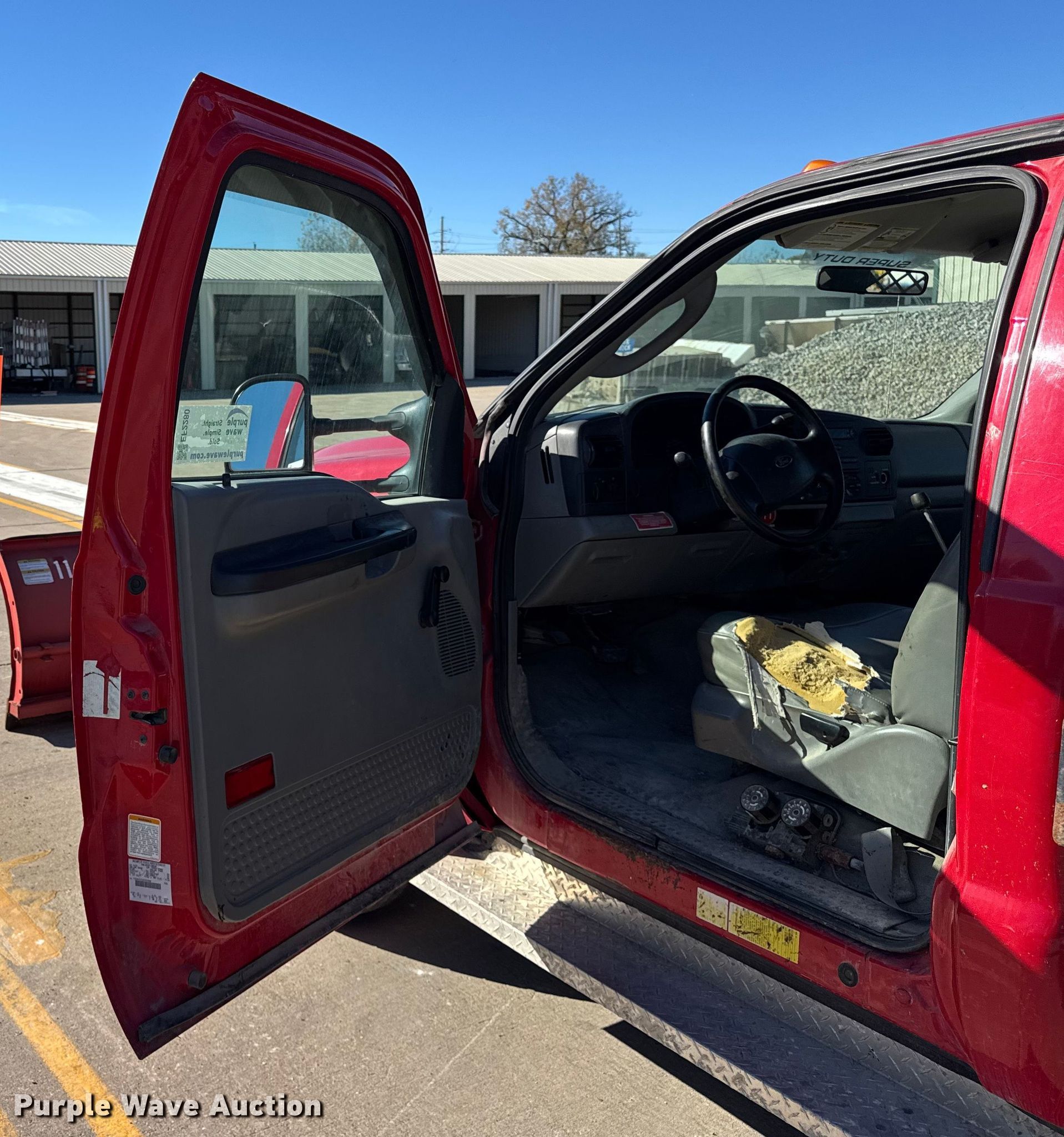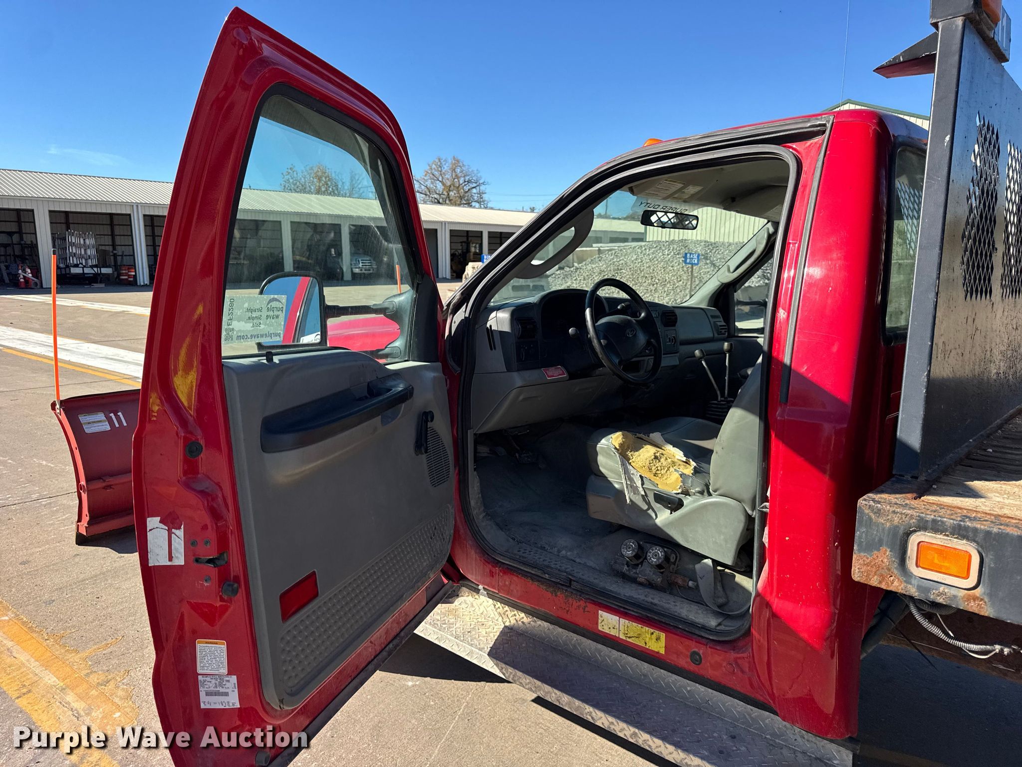 2005 Ford F350 Super Duty dump flatbed pickup truck. Miles: 81,097 on odometer, Hours: 7,495 on meter, VIN: 1FDWF37P35EA25008, Unit #: 17. Engine Displacement: 6.0L, Cylinders: 8, Fuel type: Diesel. Transmission Automatic, Four wheel drive. Interior AC, Heat. Features Bed Dump flatbed, Knapheide PVMX 93C, Length: 9' 3", Width: 96", Hi way MP 8 spreader, Western Pro Plus Ultra Finish snowplow Width: 8' 6". Tires Size: 225/70R17. Notes Two way radio not included, Front drivers side tire flat, Jump start required during on-site data collection. Missouri title. Title distribution may be delayed up to 14 days from verification of funds. City Of Hannibal. Hannibal, MO 63401