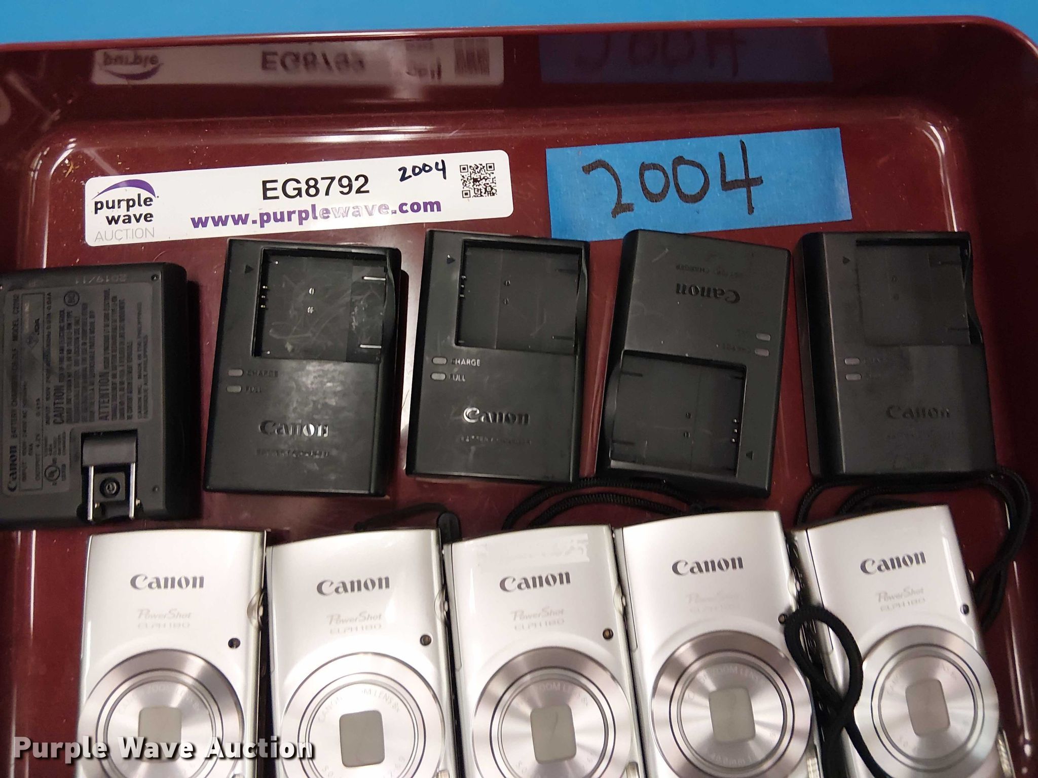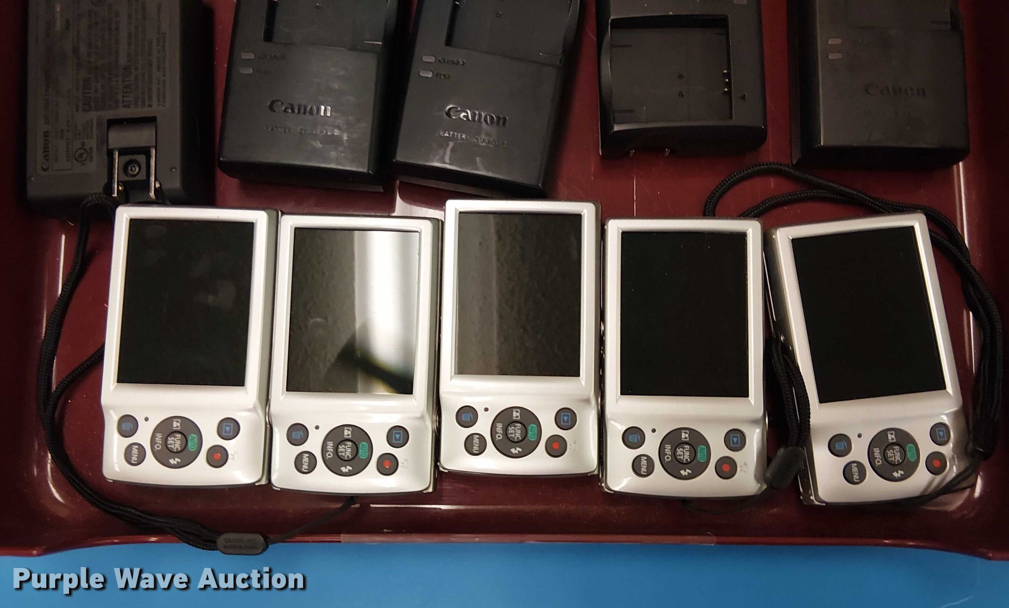Purple Wave is selling a used Electronics in Oklahoma. This item is a (5) Canon Powershot ELPH 180 cameras with the following: Unit #: 2004
