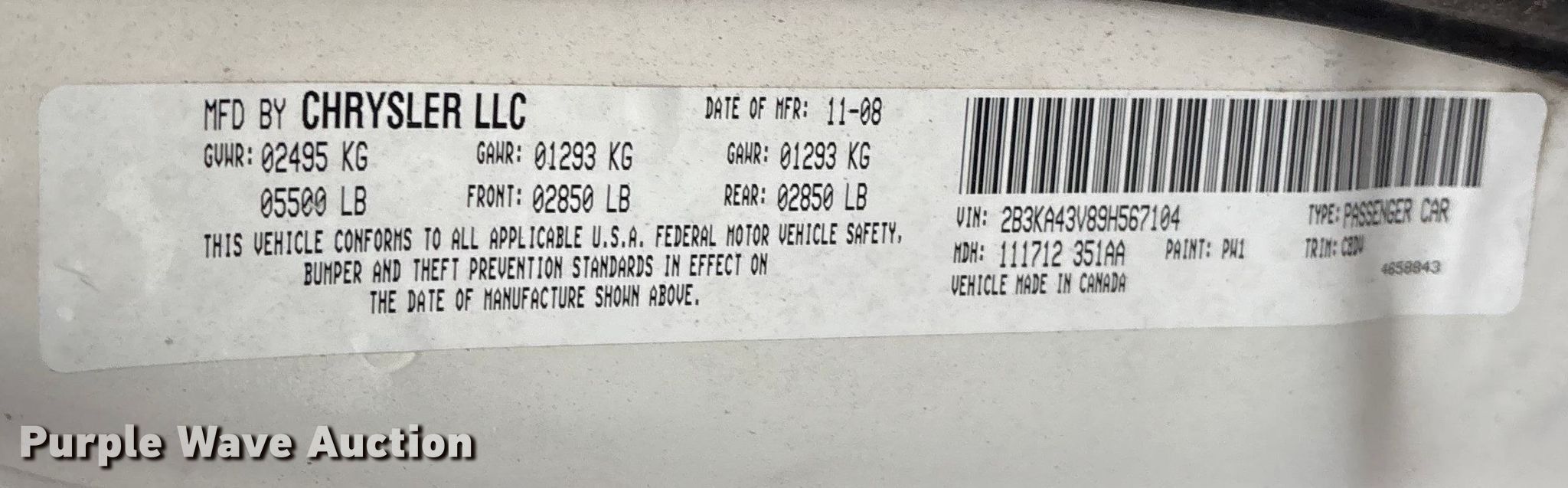 - VIN: 2B3KA43V89H567104