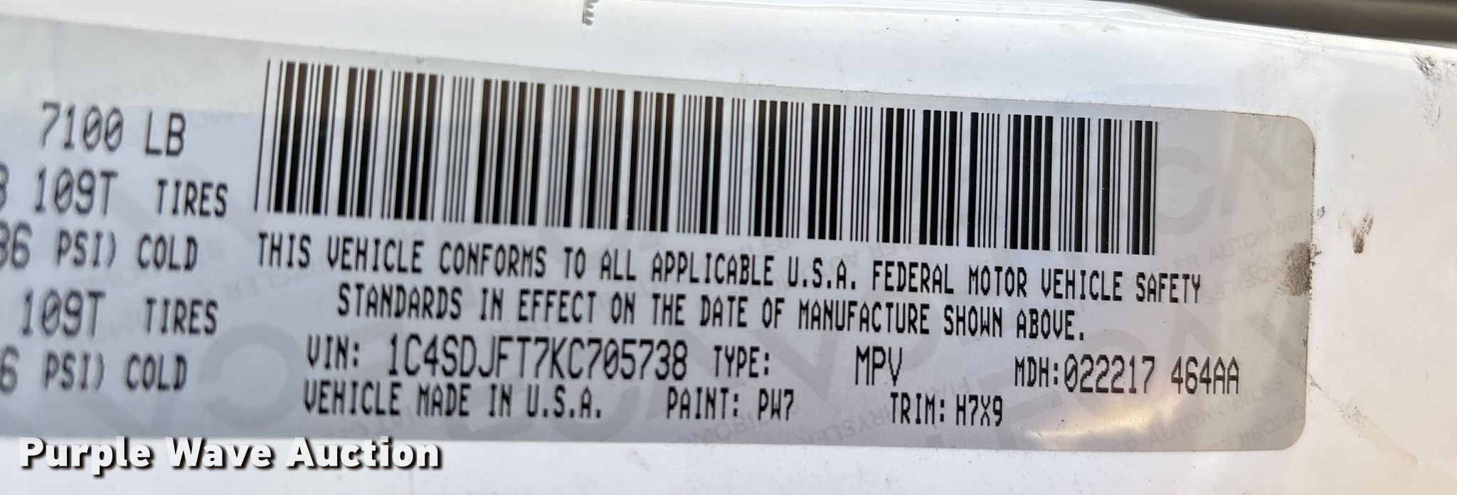 - VIN: 1C4SDJFT7KC705738