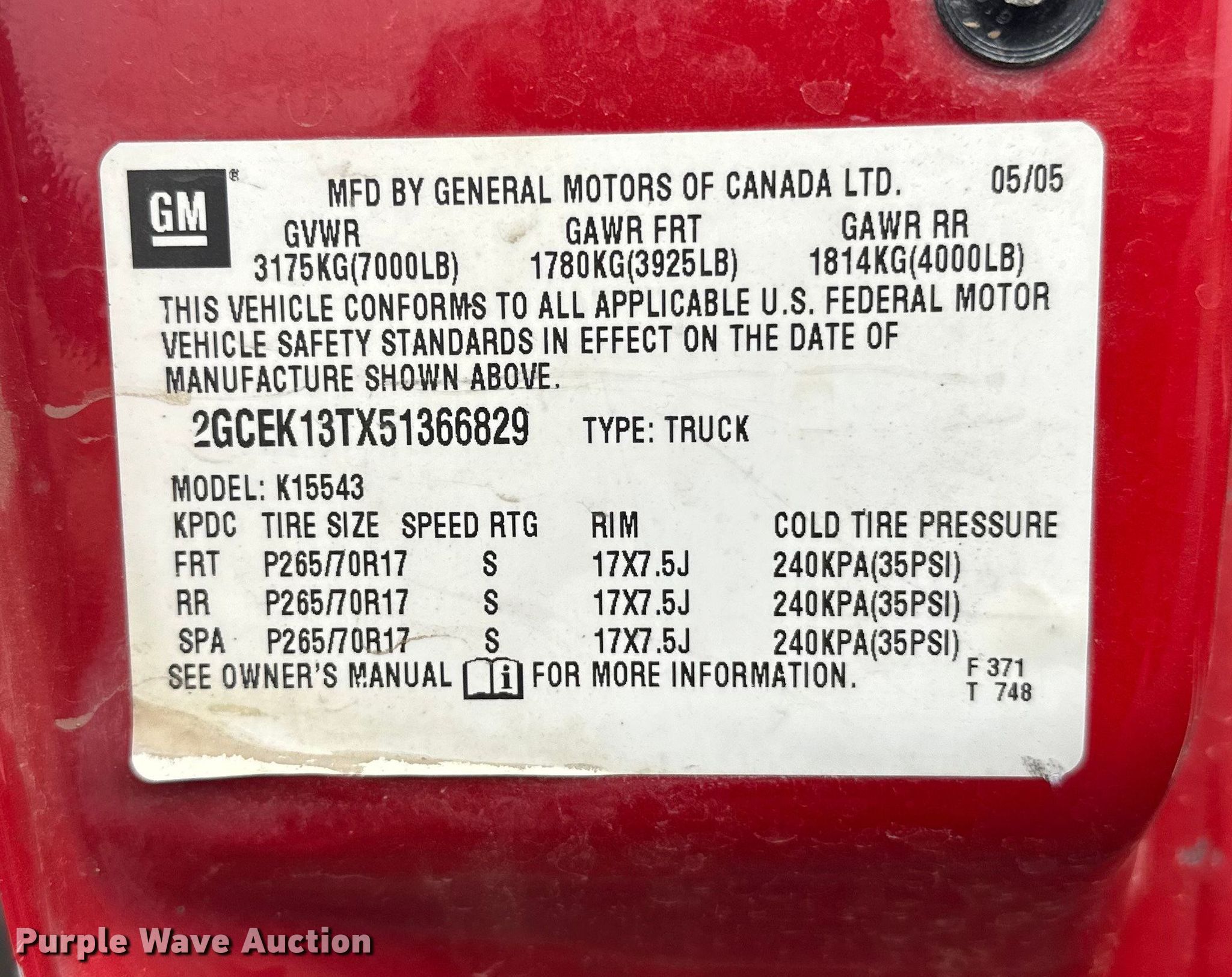 Purple Wave is selling a used 1/2 Ton Pickup or Van in Minnesota. This item is a 2005 Chevrolet Silverado 1500 Crew Cab pickup truck with the following: Miles: 175,501 on odometer, VIN: 2GCEK13TX51366829