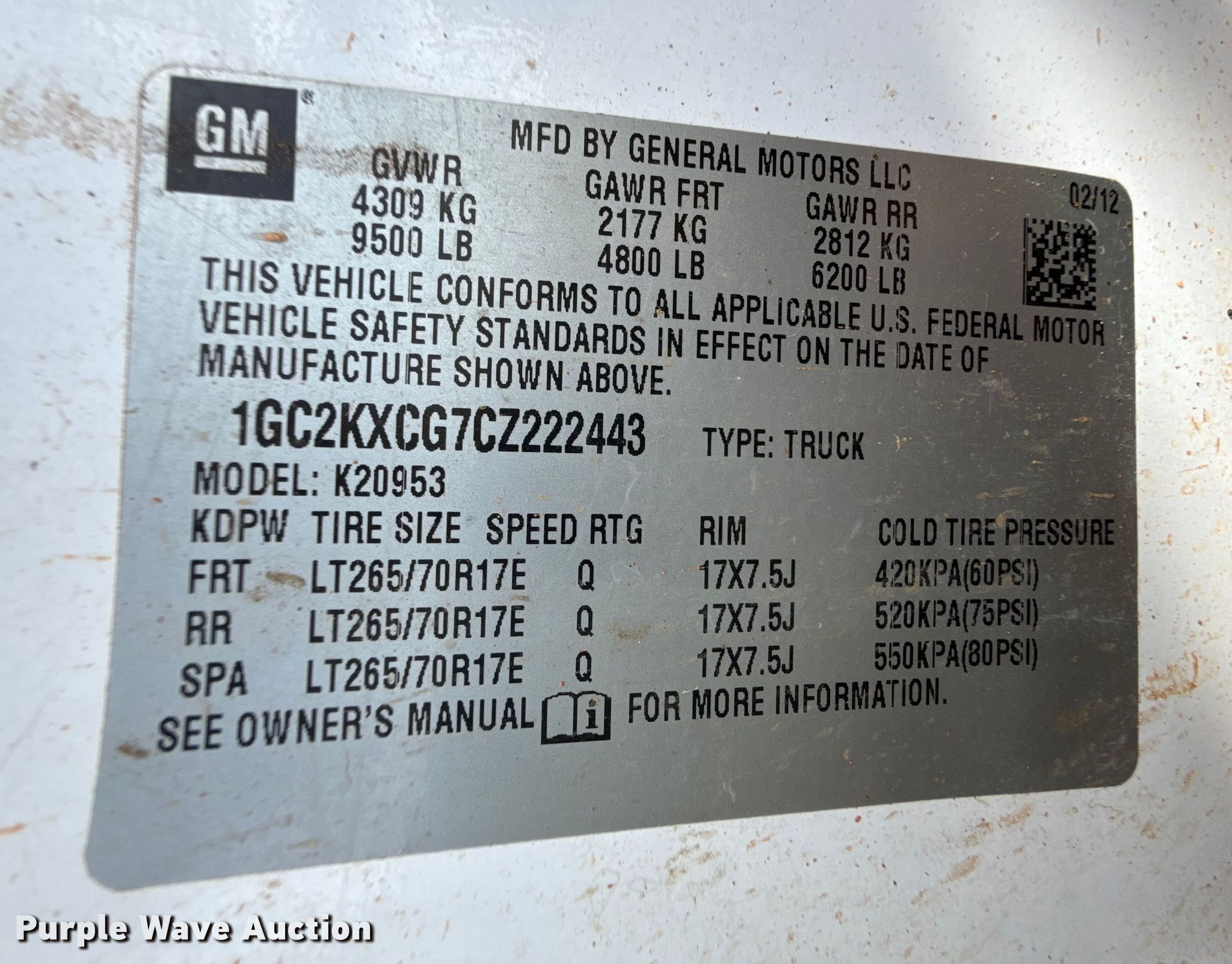 - VIN: 1GC2KXCG7CZ222443