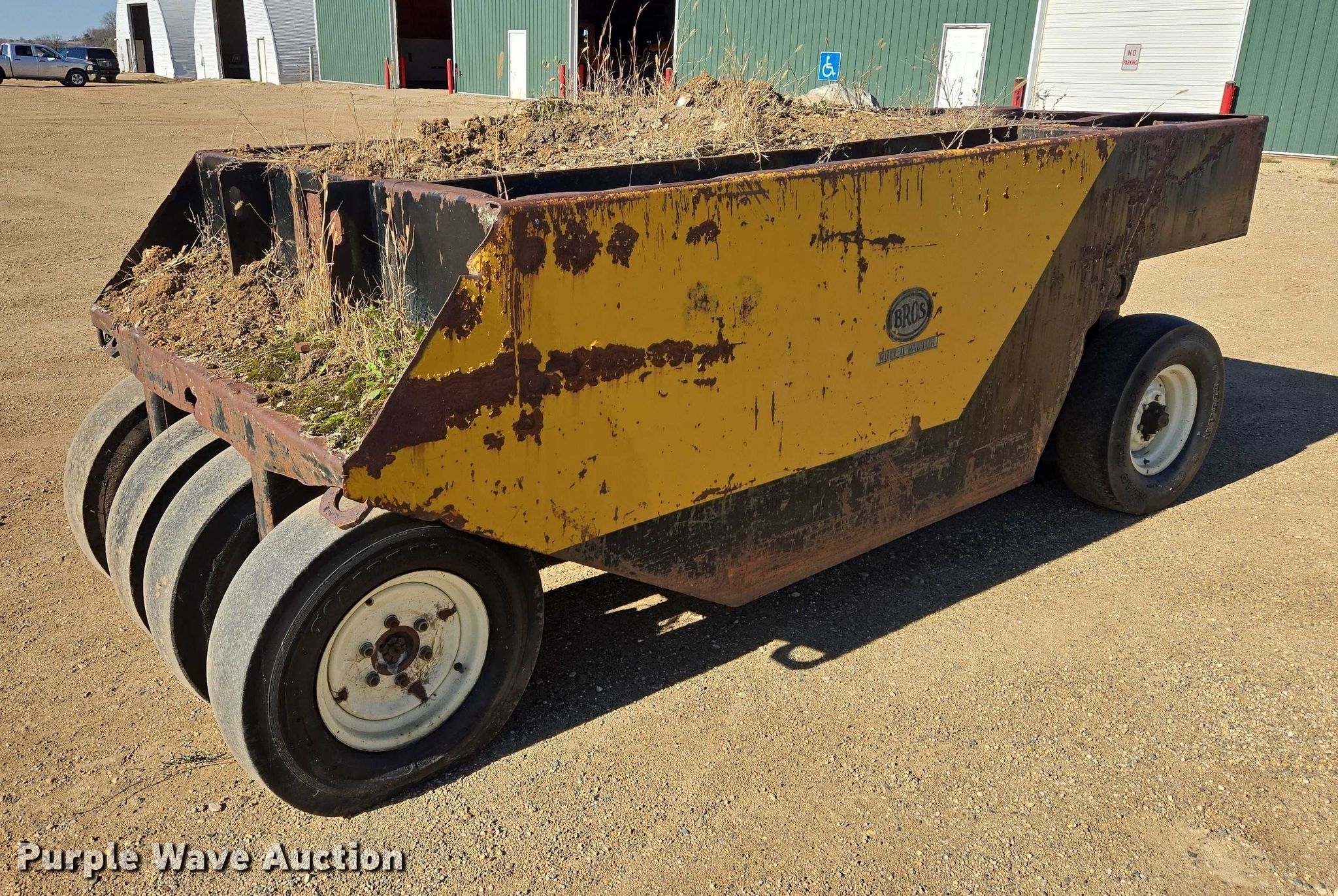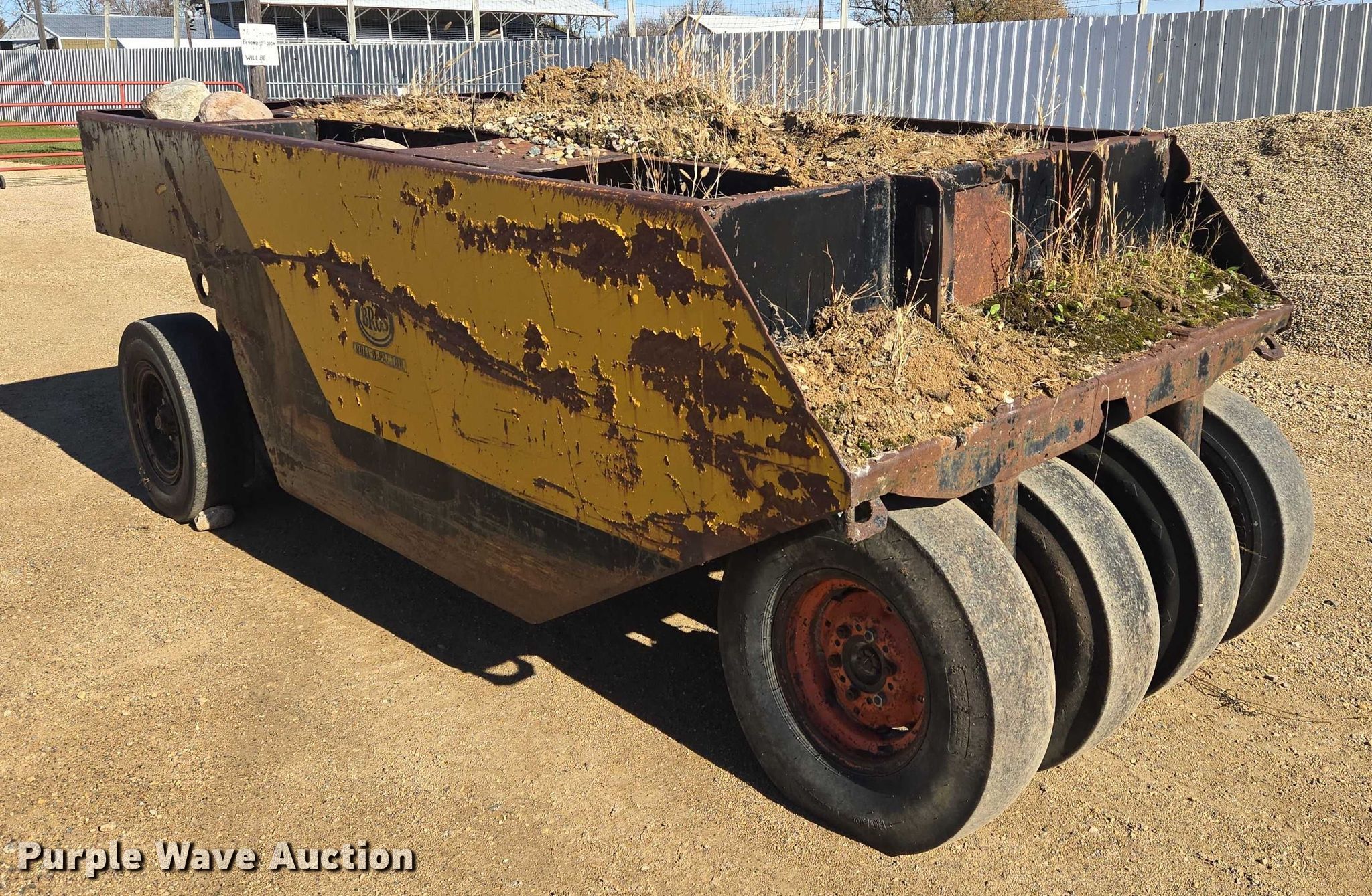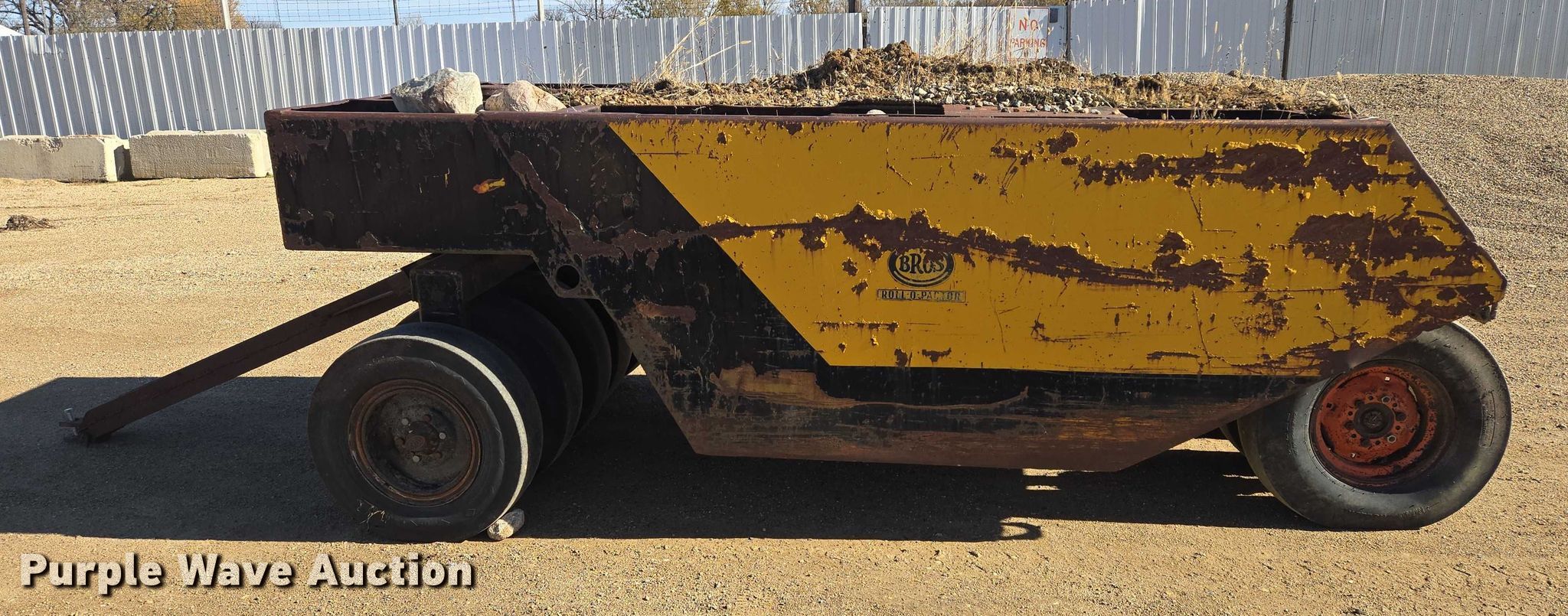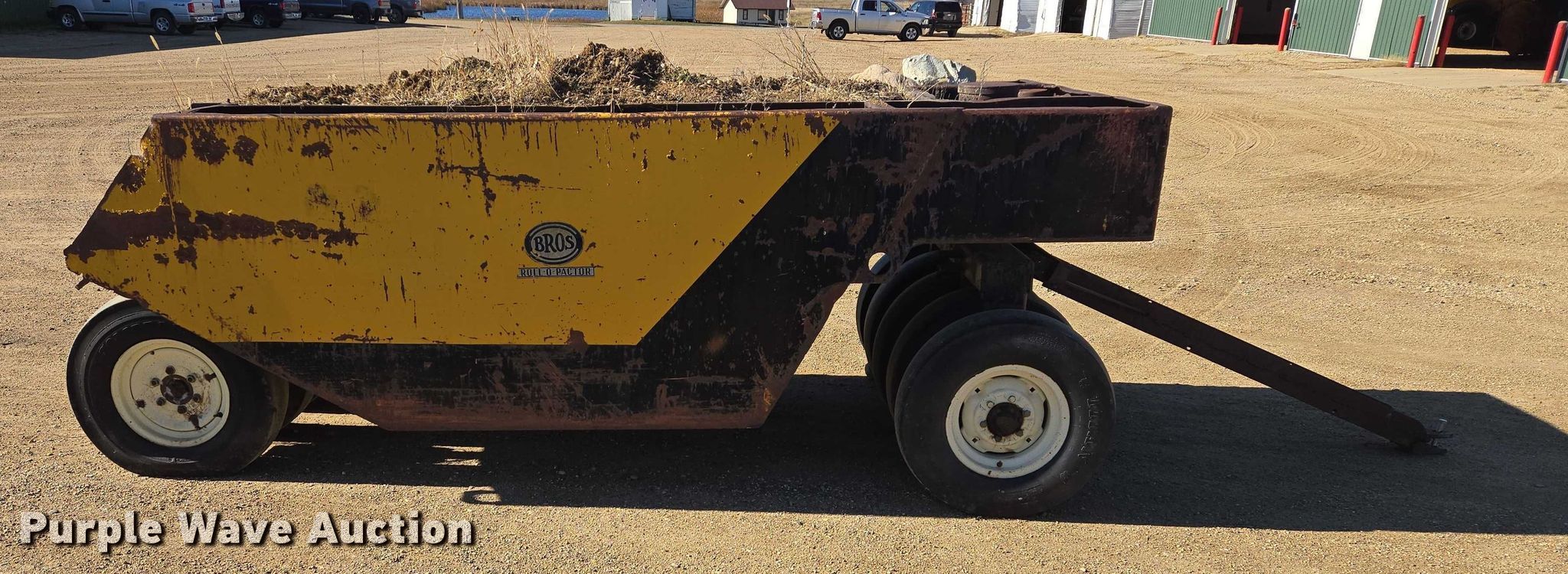 Purple Wave is selling a used Pull Type Roller Compactor in South Dakota. This item is a Bros Roll-O-Pactor pneumatic roller with the following: (9) wheels, Size: 7.50-15