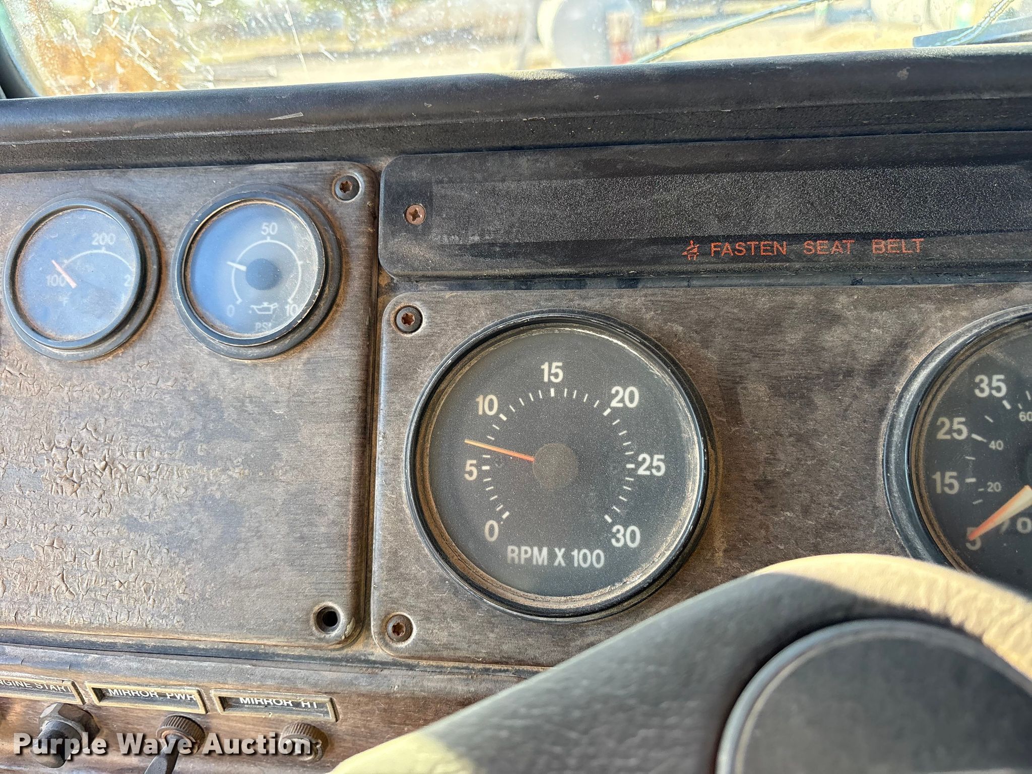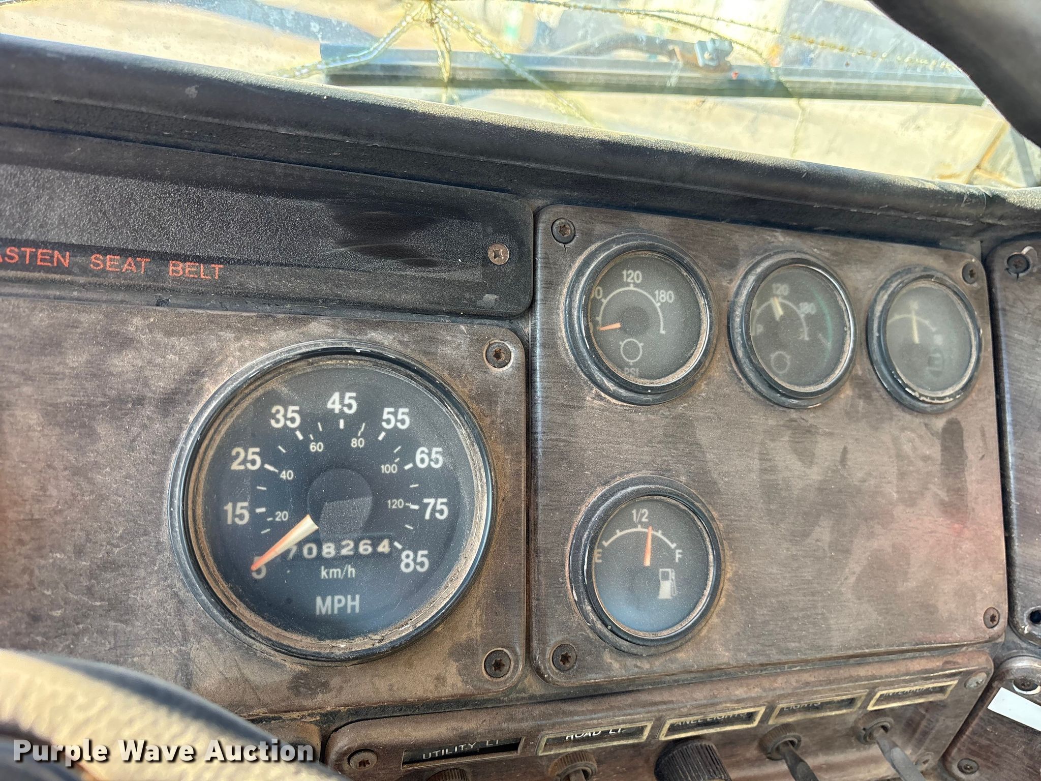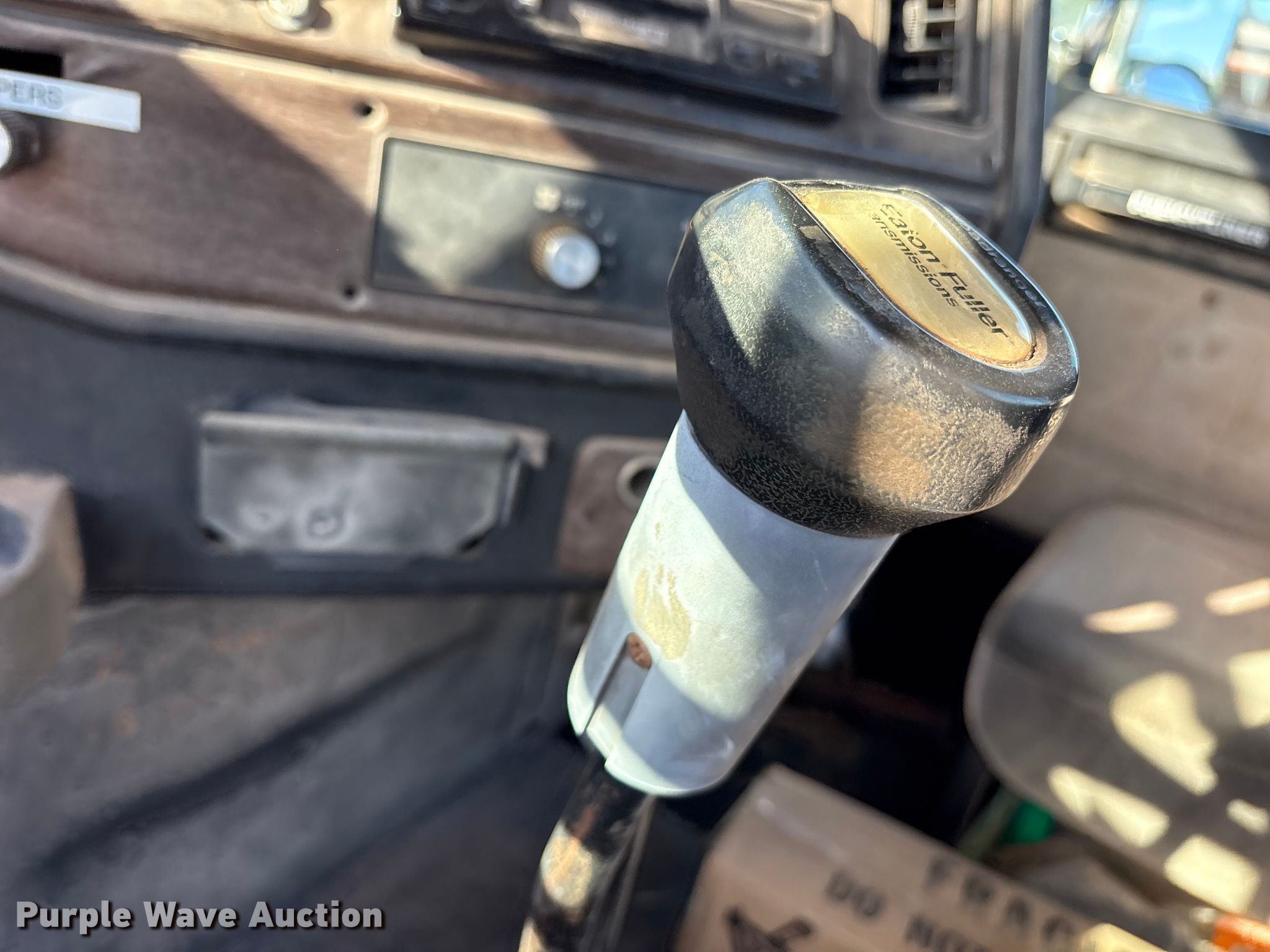 1990 Freightliner FLD semi truck. Miles: 708,264 on odometer, VIN: 1FUYDCYB3LP359233, Unit #: 756104. Engine Cummins NTC/N14, Displacement: 14.0L, Cylinders: 6, Fuel type: Diesel, HP: 315. Transmission Eaton Fuller Roadranger, Manual, Speed: 9. Chassis Axles: Tandem, Suspension: Spring, Brakes: Air, PTO, GVWR: 50,000 lbs FAWR: 12,000 lbs, IAWR: 19,000 lbs, RAWR: 19,000 lbs. Interior AC, Heat. Features Deck plate: Aluminum, Winch Tulsa, Fifth wheel type: Fixed, Sliding, Rolling tailboard, Fuel tank: Dual. Tires Size: 11R22.5. Notes Windshield chipped or cracked. Texas title. Title distribution may be delayed up to 14 days from verification of funds. Taylor County. Buffalo Gap, TX 79508