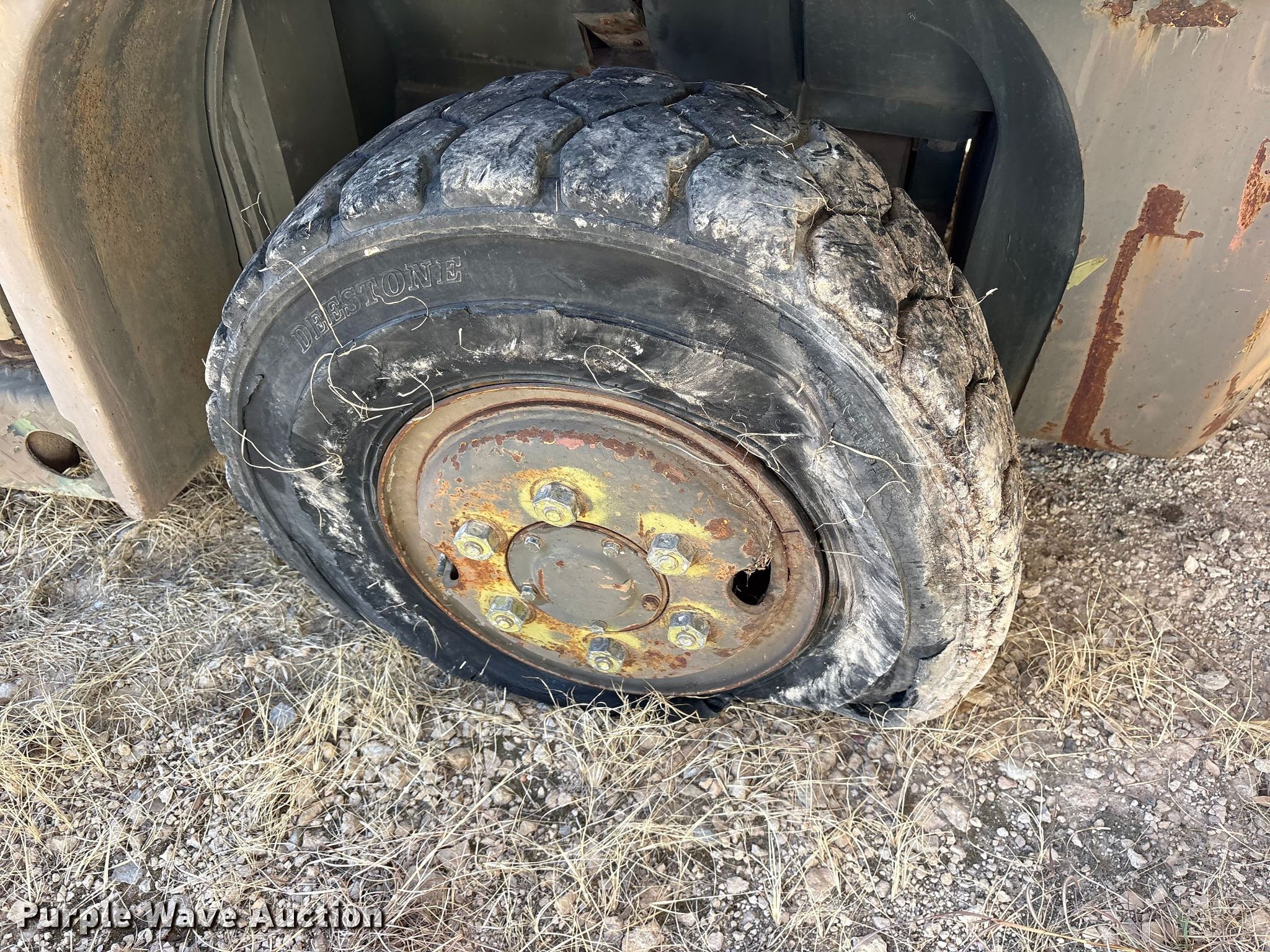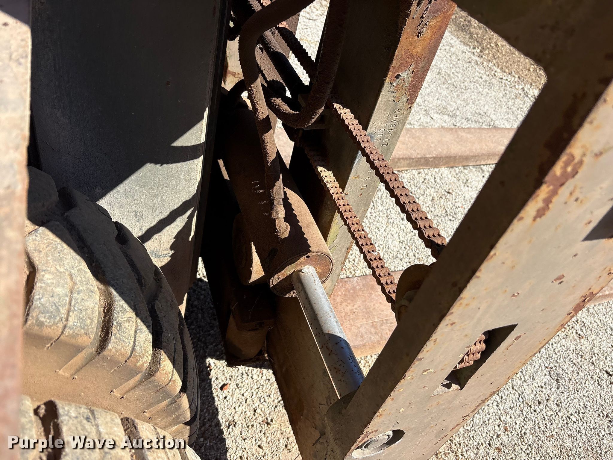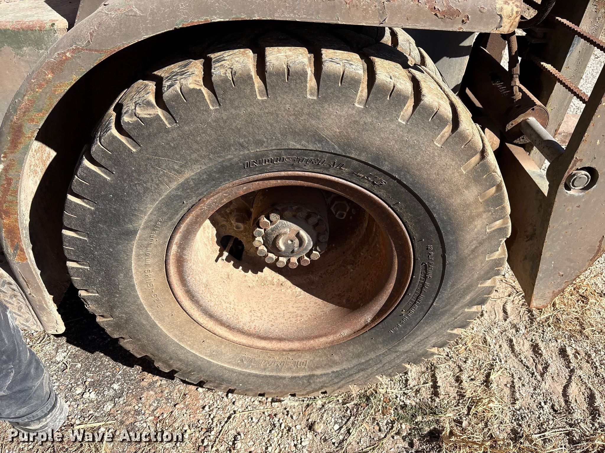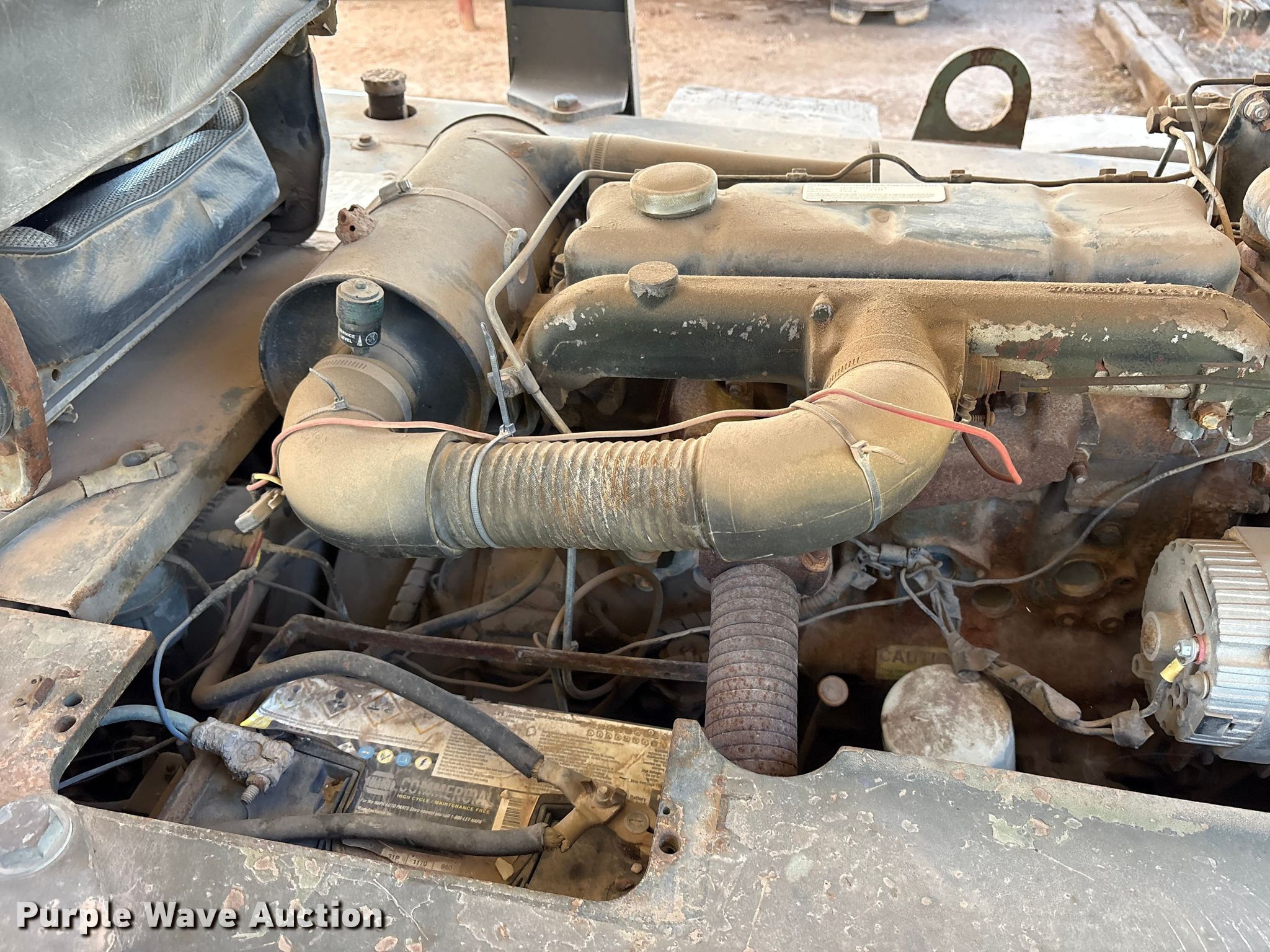 1981 Hyster H100F AF 48 forklift. Hours: Unknown, Serial: D505377. Engine Perkins, Displacement: 4.236L, Cylinders: 4, Fuel type: Diesel. Transmission Powershift. Operators station Canopy. Features Maximum lift capacity: 10,000 lbs, Maximum lift height: 95", Collapsed mast height: 91", Mast stages: 2, Side shift, Mast tilt, Fork positioner, Fork length: 72". Tires Size: 8.25-15 NHS. Notes Jump start required during on-site data collection, Lift cylinder issues, hydraulic leaks, Tire issues, need replaced Flat tire, Side wall damaged. Taylor County. Buffalo Gap, TX 79508
