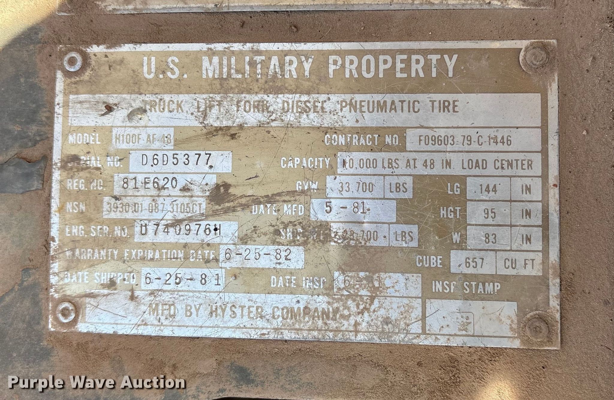 1981 Hyster H100F AF 48 forklift | SOLD! December 02 Government Auction