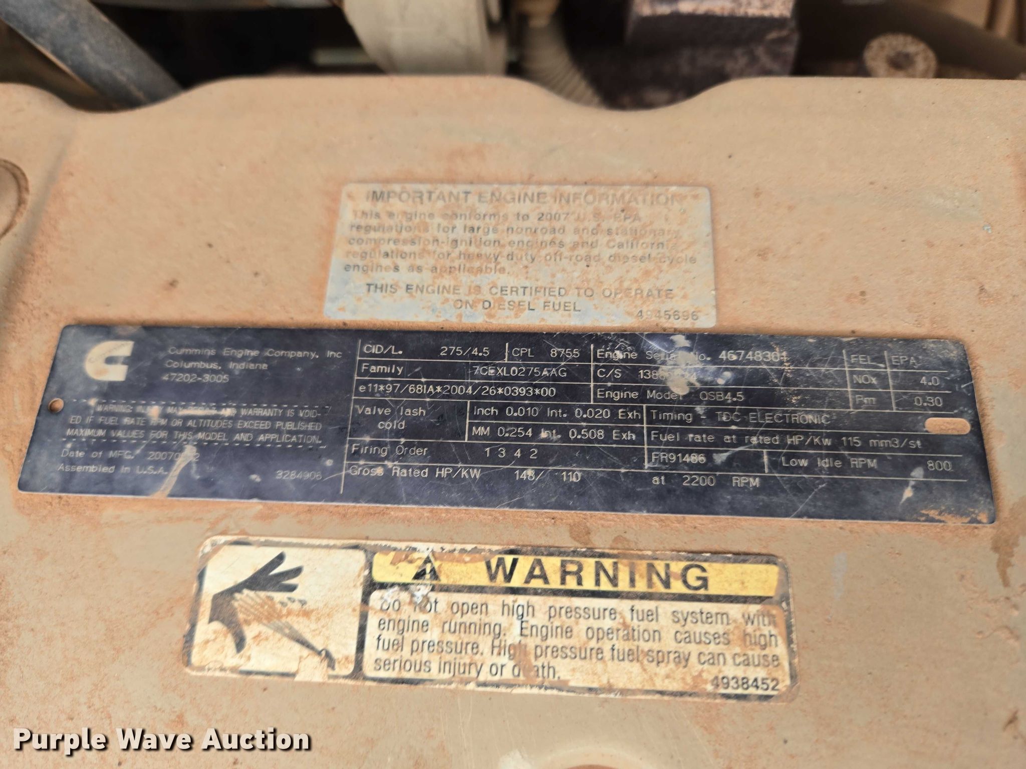 Volvo DD118HF double drum vibratory roller. Hours: 1,979 on meter, Serial: 196070. Engine Cummins OSB4.5, Serial: 4674830, Displacement: 4.5L, Cylinders: 4, Fuel type: Diesel. Transmission Hydrostatic. Operators station OROPS. Features Drum type: Smooth, Vibratory system: Double, Front drum Width: 78.5", Diameter: 54", Rear drum Width: 78.5", Diameter: 54", Drum scrapers: Front, Rear, Water spray applicator: Front, Rear, Dual propel system. Notes Brake sensor issues, unit will not move , Unknown operating condition. Logan County District #2. Guthrie, OK 73044