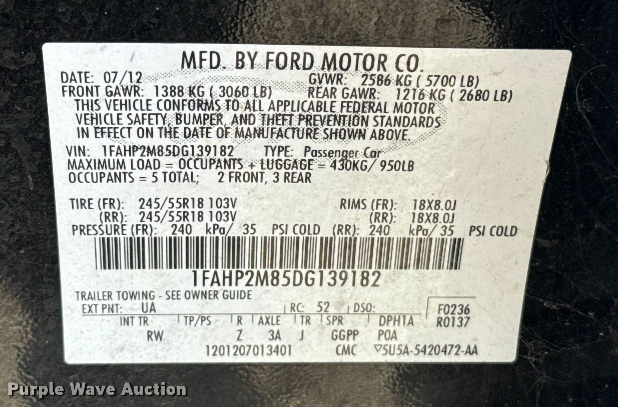 • VIN: 1FAHP2M85DG139182
