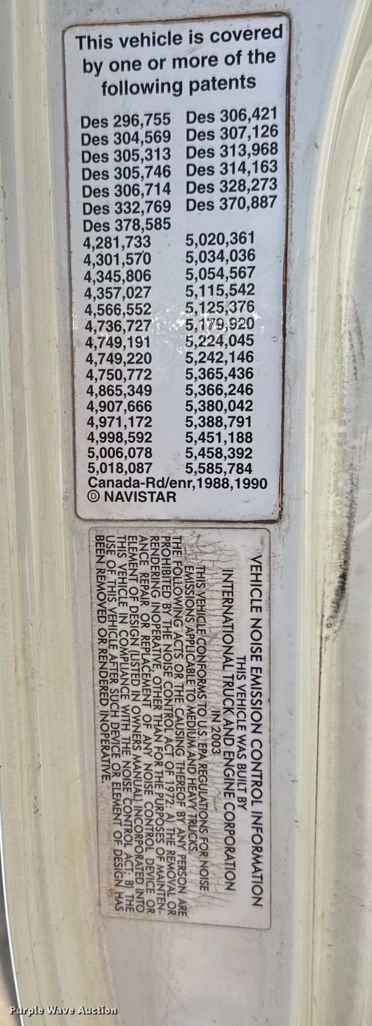 Take a look at this used 2003 International 7400 dump truck being sold on December 2nd, 2025 in the Tuesday December 02 Government Auction made by International. Take a look at all of the item information below or take a look at similar auctions for Construction Trucks.