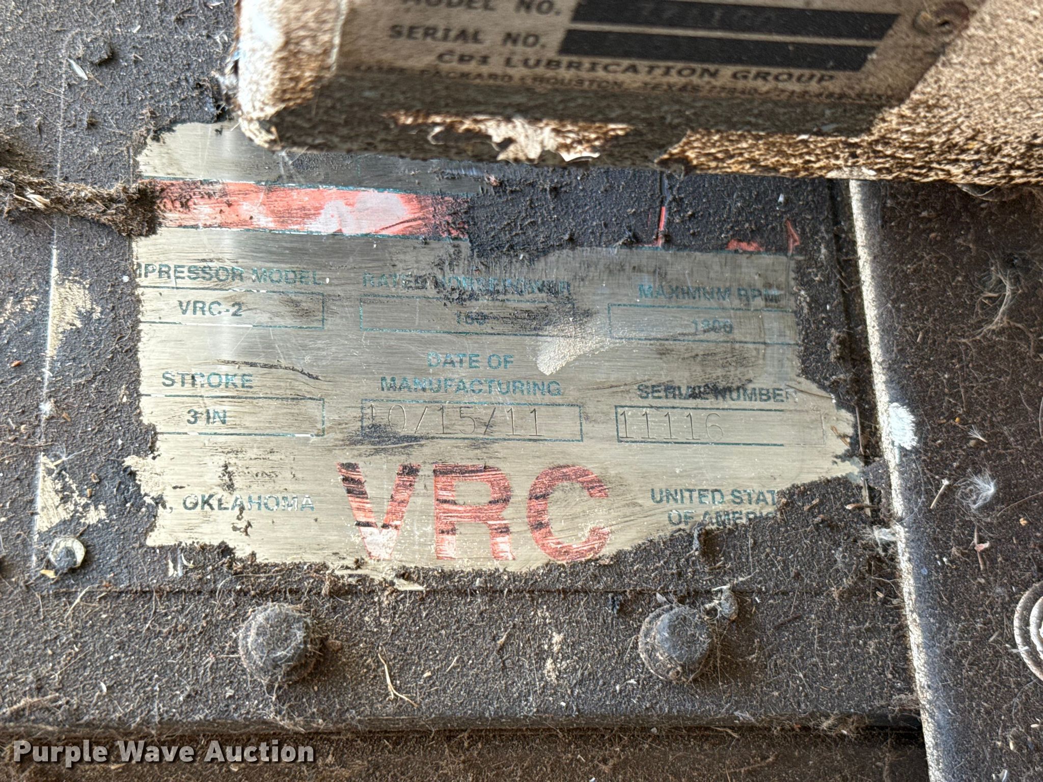 Purple Wave is selling a used Oilfield Equip. in Oklahoma. This item is a 2011 Arrow VRC-2 gas compressor with the following: Serial: 11116