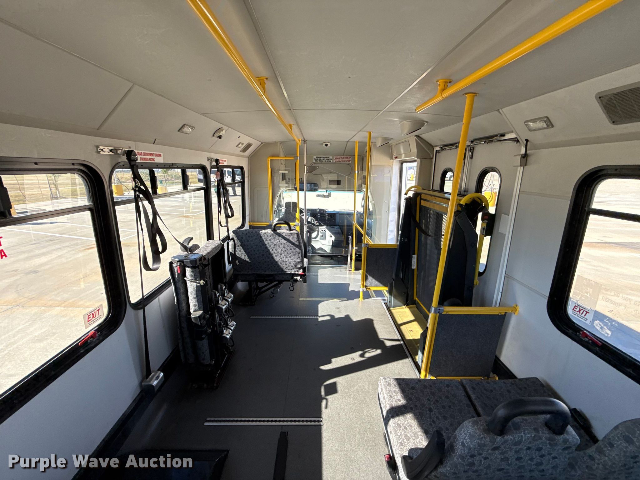 2013 Ford E450 Super Duty shuttle bus. Miles: 167,398 on odometer, Hours: 3,069 on meter, VIN: 1FDXE4FS7DDA56933, Unit #: 1371. Engine Displacement: 6.8L, Cylinders: 10, Fuel type: CNG. Transmission Automatic. Chassis Axles: Single, Suspension: Spring, Brakes: Hydraulic, GVWR: 14,500 lbs, Wheelbase: 158". Interior AC, Heat, Cruise control, Auxiliary controls, Passengers: 14, Wheelchair lift. Tires Size: LT225/75R16. Notes Jump start required during on-site data collection. Oklahoma title. Title distribution may be delayed up to 30 days from verification of funds. City Of Norman. Norman, OK 73069