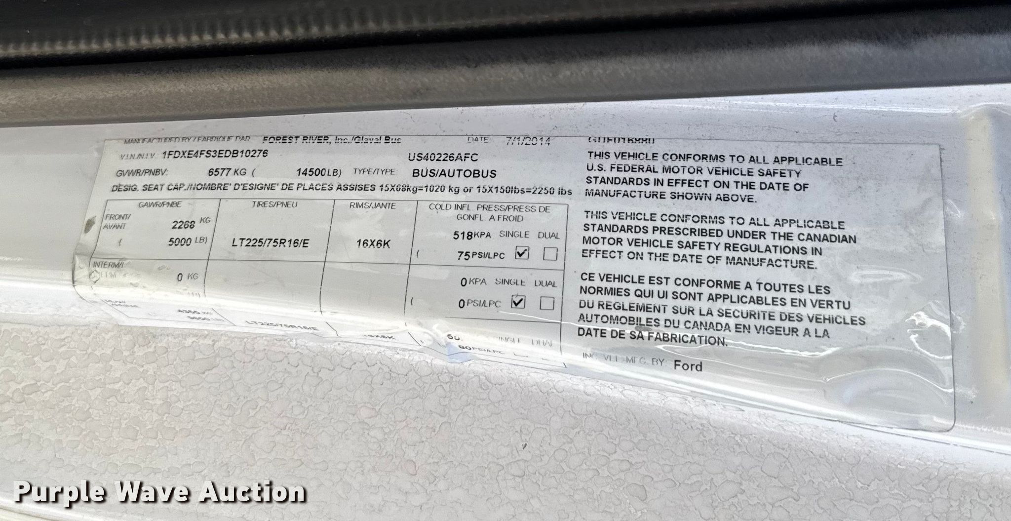 Purple Wave is selling a used Bus in Oklahoma. This item is a 2014 Ford E450 Super Duty shuttle bus with the following: Miles: 192,577 on odometer, Hours: 8,514 on meter, VIN: 1FDXE4FS3EDB10276, Unit #: 1475