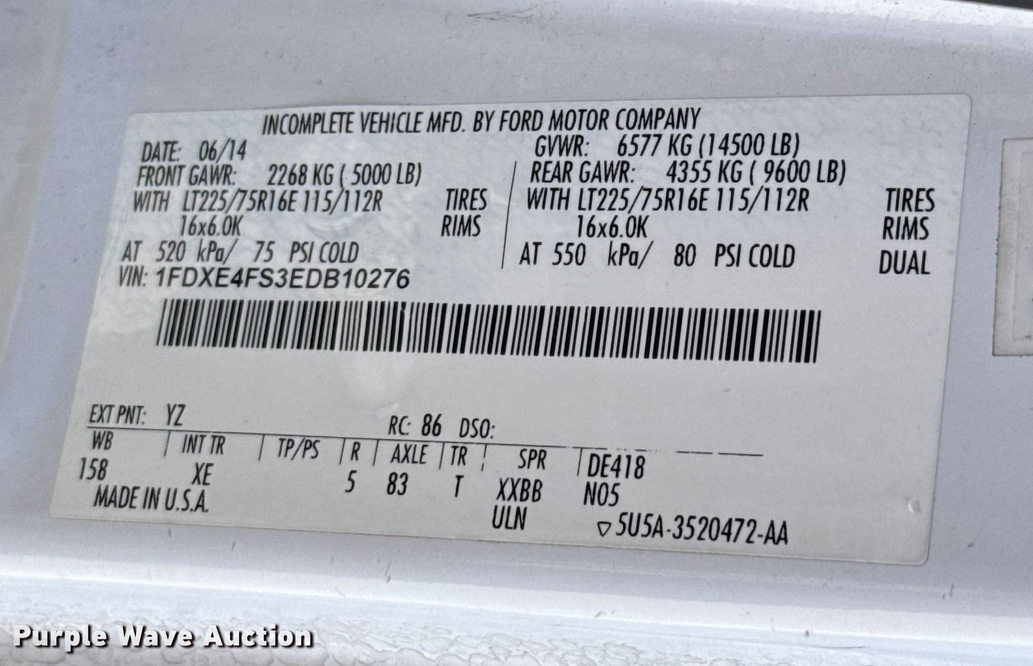 - VIN: 1FDXE4FS3EDB10276