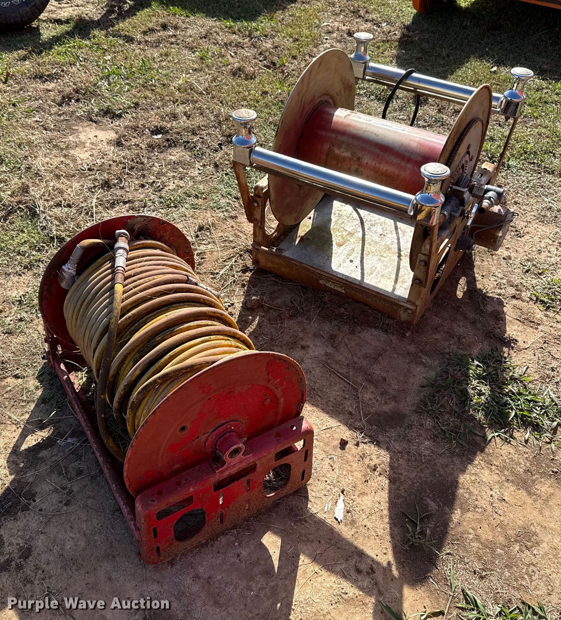 Purple Wave is selling a used Hose Reel in Oklahoma. This item is a (2) hose reels with the following: Unknown operating condition