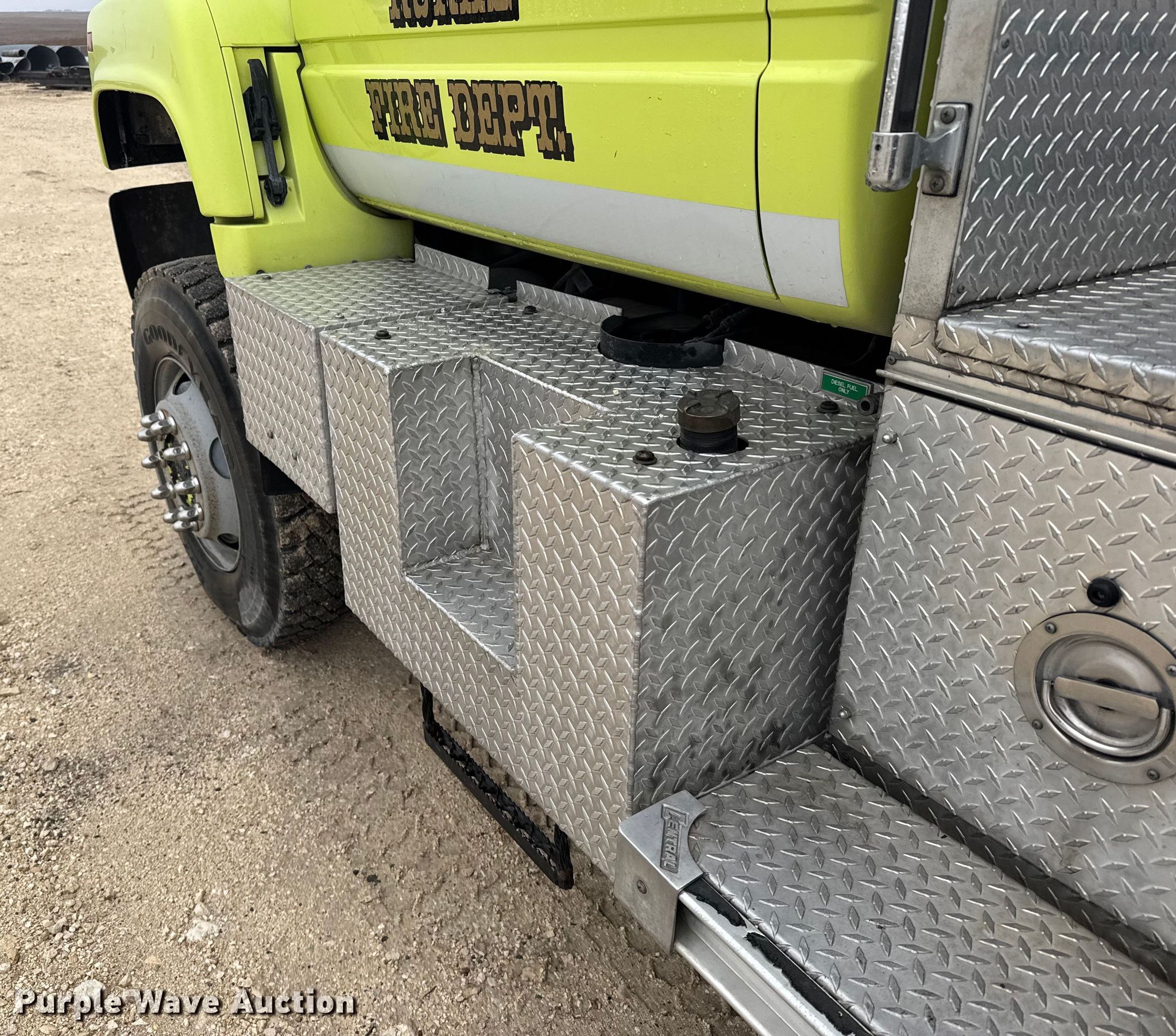 2002 GMC C8500 fire truck. Miles: 14,980 on odometer, VIN: 1GDP7H1C32J501247. Engine Caterpillar LG5, Displacement: 7.2L, Cylinders: 6, Fuel type: Diesel. Transmission Automatic. Chassis Four wheel drive, Axles: Single, Suspension: Spring, Brakes: Air, GVWR: 35,000 lbs. Interior Heat. Features Fire truck body Central state fire apparatus NH40, Elevated deck gun, Tank Capacity: 1,000 gallons, Pump. Tires Size: 11R22.5. Kansas title. Title distribution may be delayed up to 14 days from verification of funds. Ellis County Fire Department. Hays, KS 67601