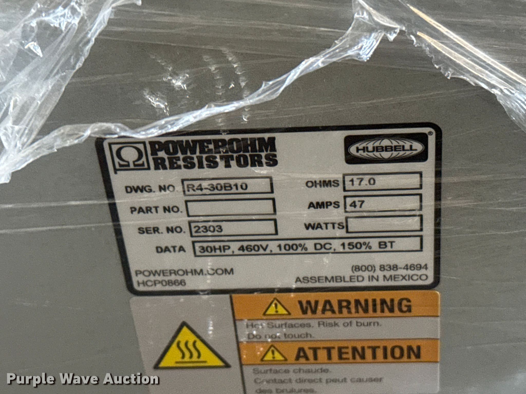 Purple Wave is selling a used Building Materials in Kansas. This item is a (4) Hubbell R4-30B10 powerohm resistors with the following: (4) Hubbell R4-30B10 powerohm resistors. Salina, KS 67401