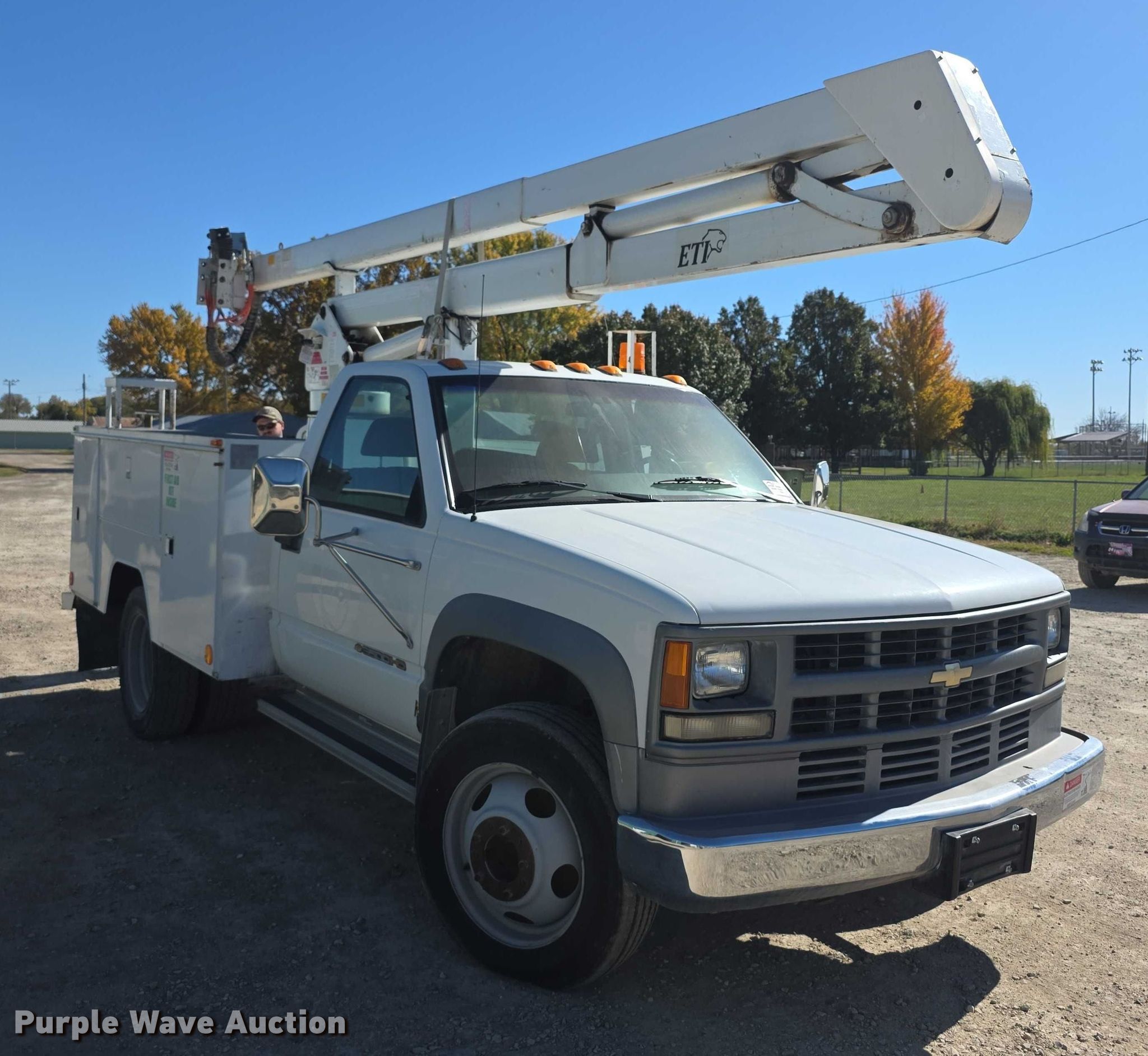 This 1995 Chevrolet C3500 bucket truck will sell to the highest bidder regardless of price.