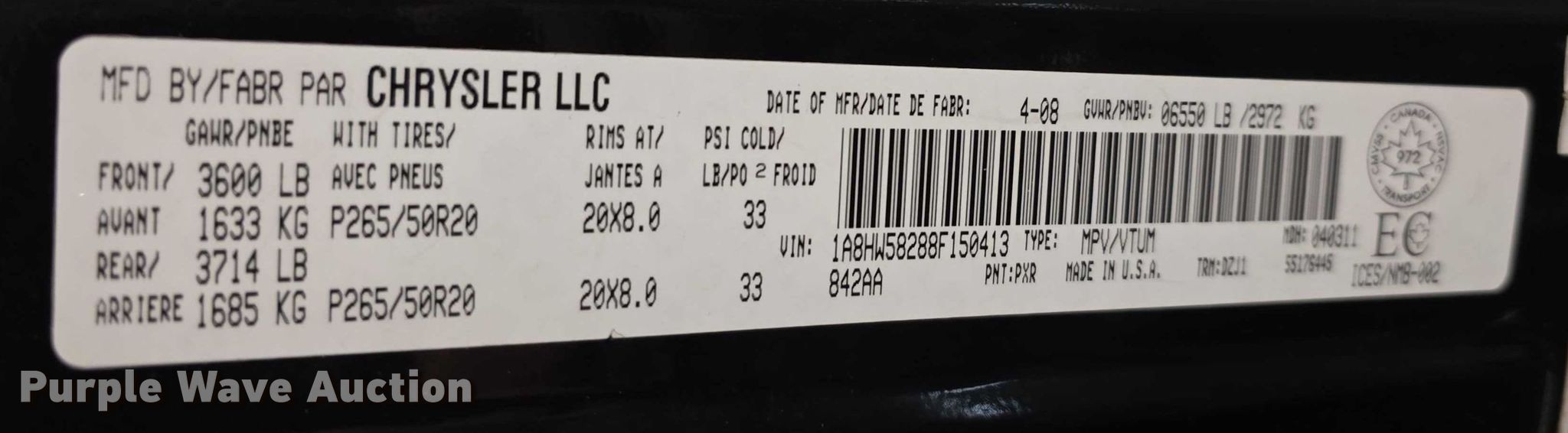 Purple Wave is selling a used Passenger Vehicle in Kansas. This item is a 2008 Chrysler Aspen Limited SUV with the following: Miles: 195,571 on odometer, VIN: 1A8HW58288F150413