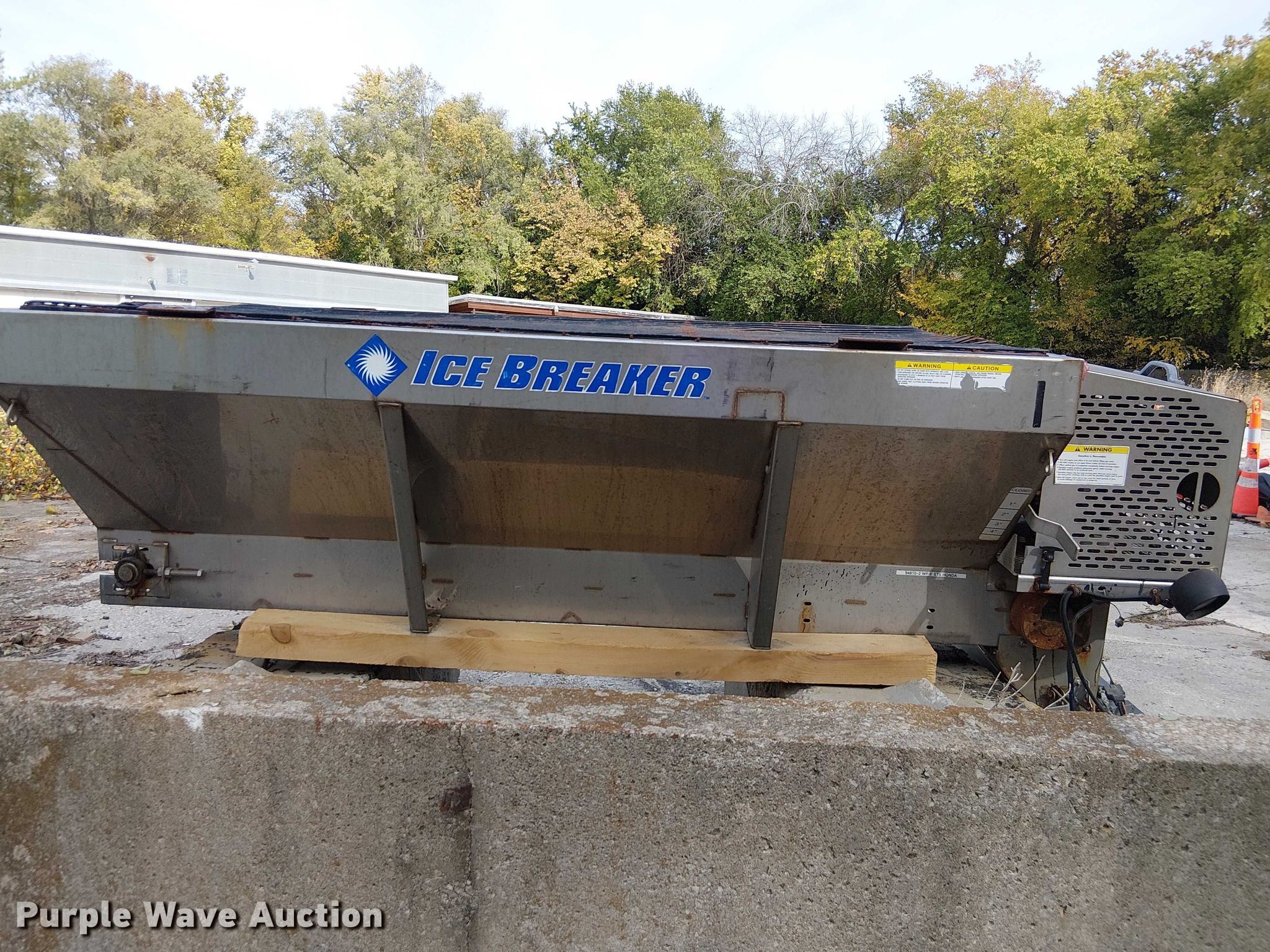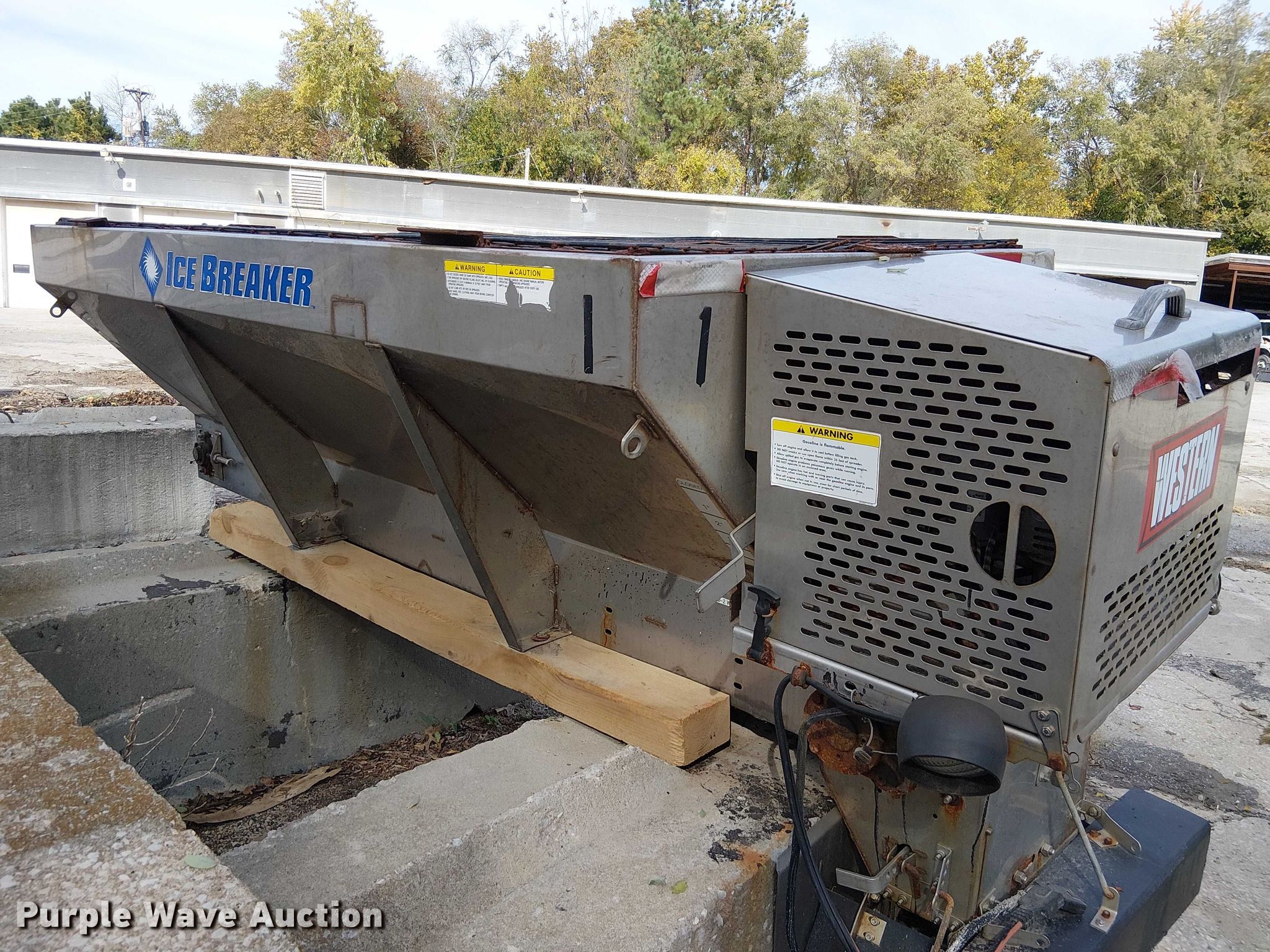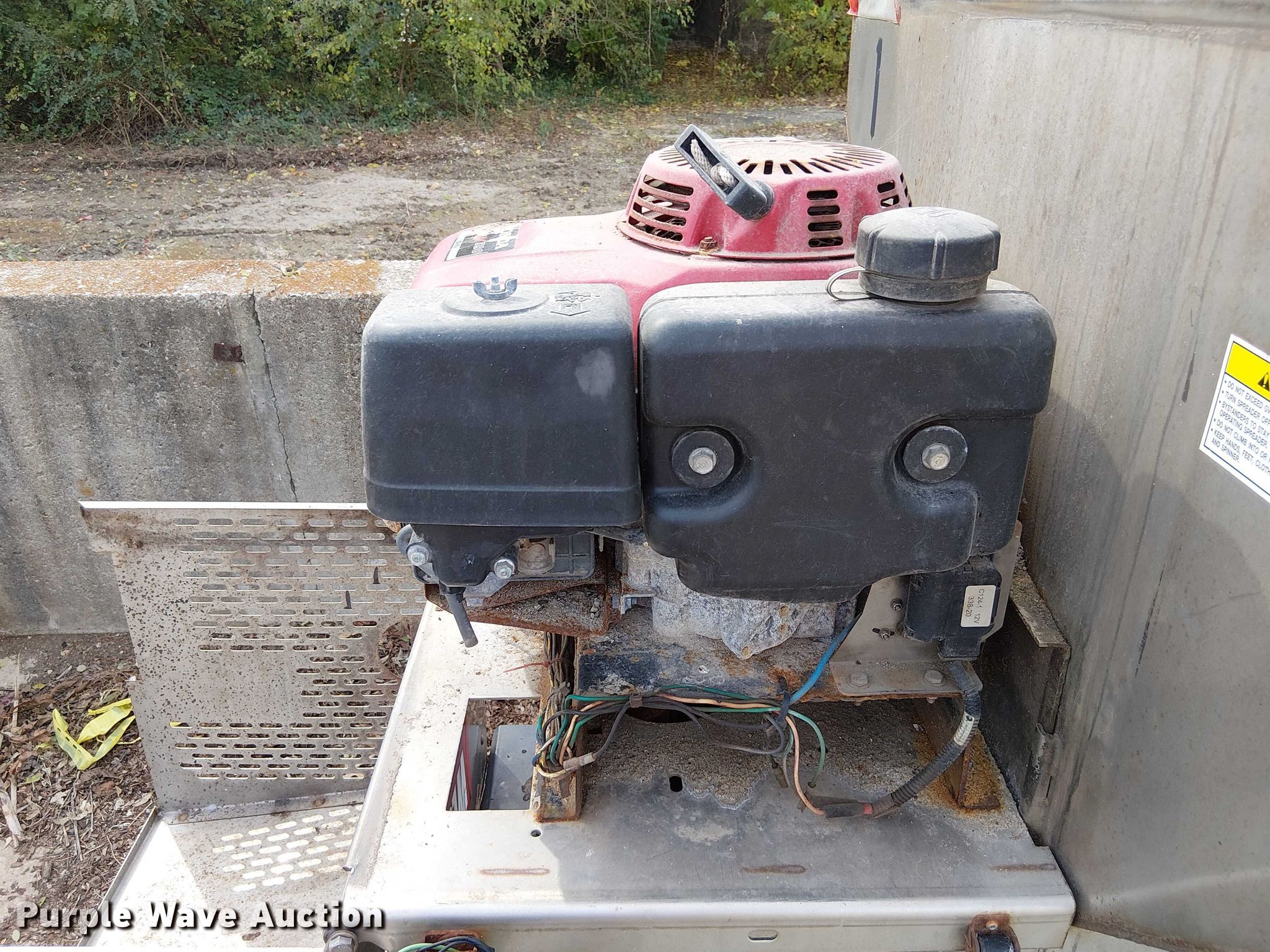 Purple Wave is selling a used Truck Part and Attach. in Missouri. This item is a Western spreader with the following: 8' L x 52" W, Honda GXV390 engine, Cylinders: 1, Fuel type: Gas, Wiring harness, Control box