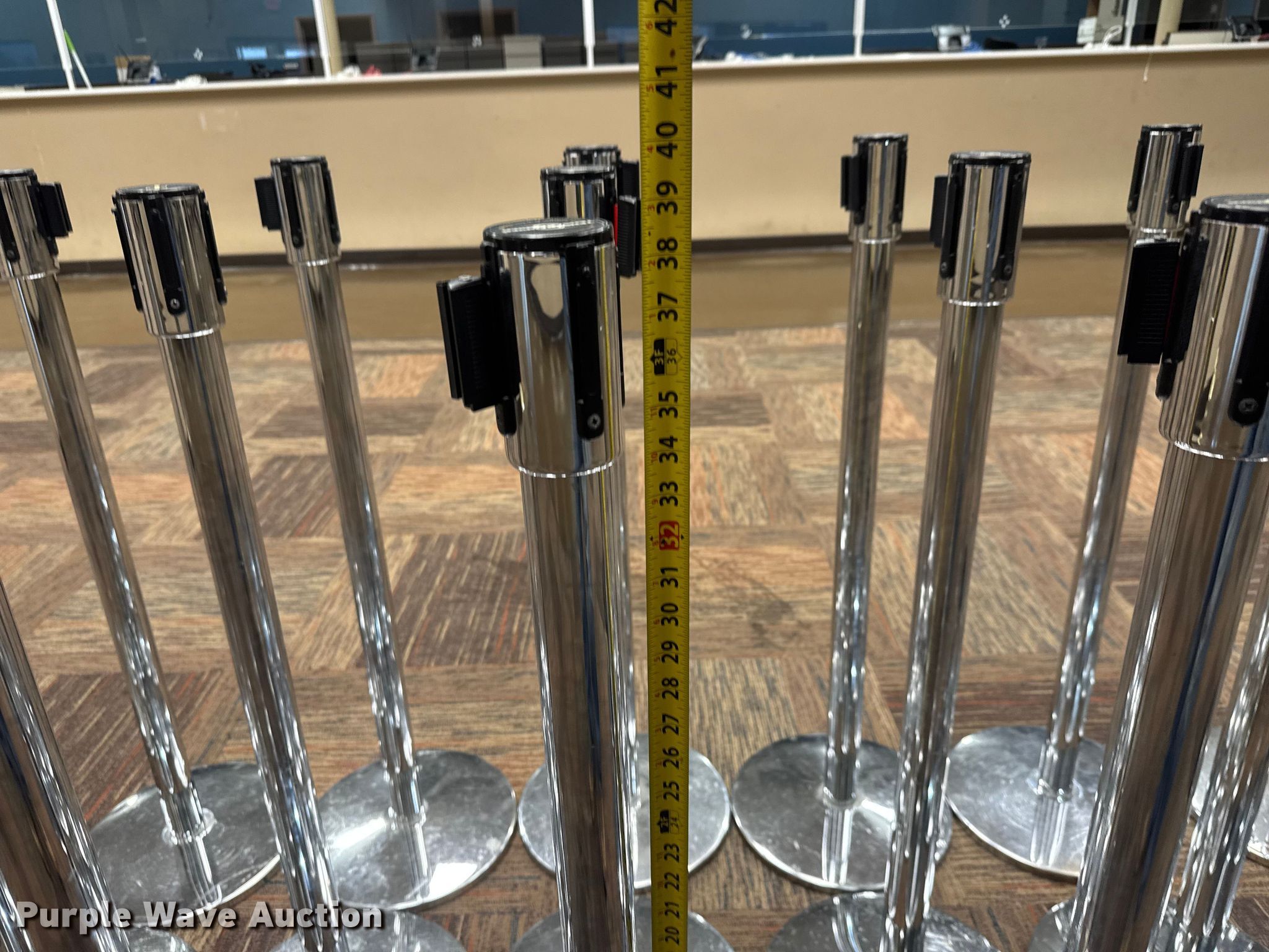 (20) Tensabarrier Tensator stanchions. Height: 40", Retractable. Sedgwick County Tag Office. Wichita, KS 67218