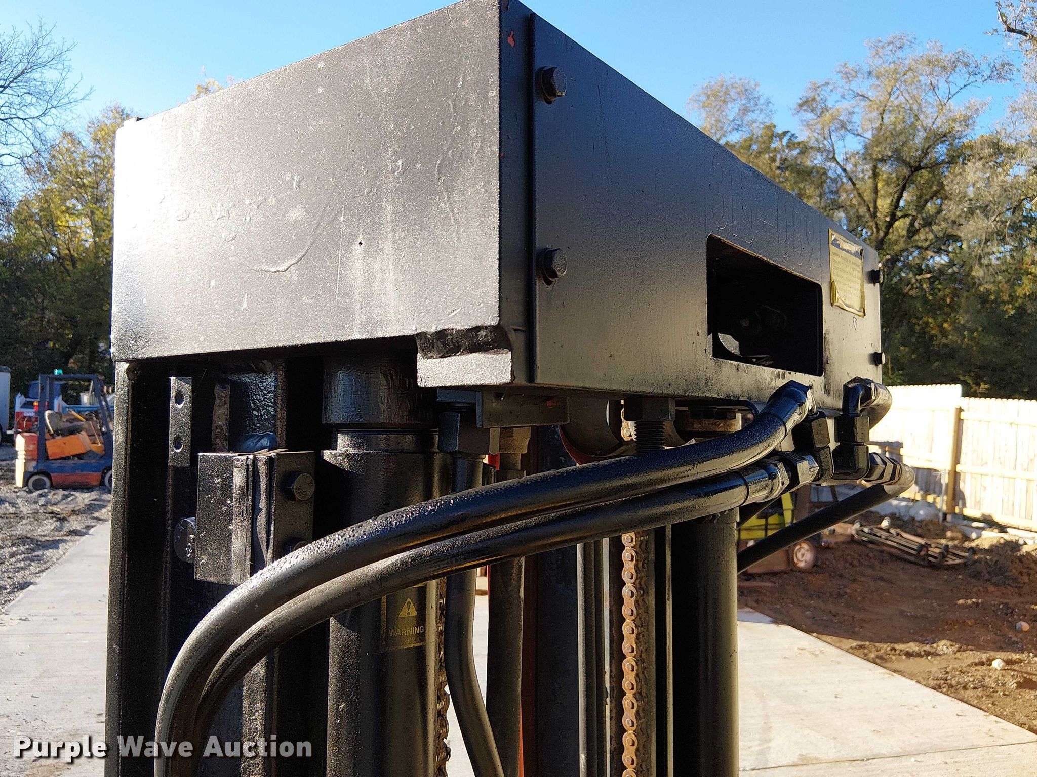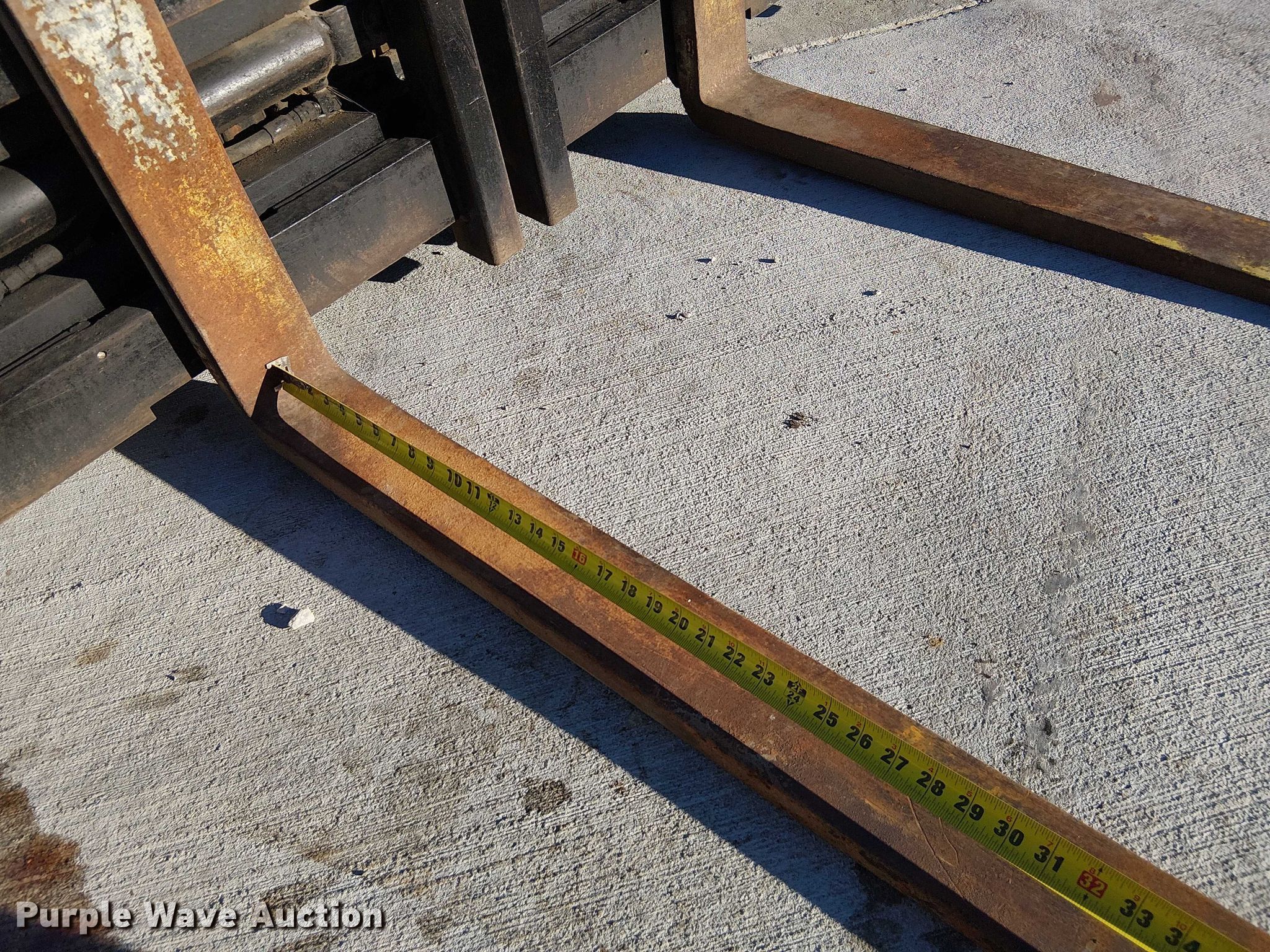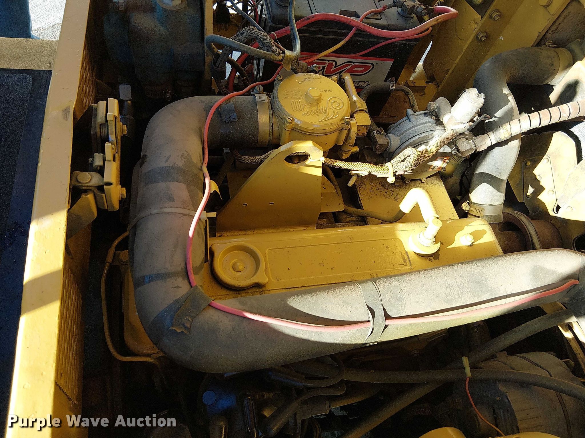 Caterpillar TC60DSA forklift. Hours: 434 on meter, Serial: 21C212. Engine Cylinders: 4, Fuel type: LPG LP bottle: Not included. Transmission Powershift. Operators station OROPS, Canopy. Features Maximum lift capacity: 4,900 lbs, Maximum lift height: 172", Collapsed mast height: 76", Mast stages: 3, Side shift, Mast tilt, Fork positioner, Fork length: 42". Tires Front: 18x8x12 1/8, Rear: 16x6x10 1/2, Solid. Notes Exhaust system issues, leaks. Tonganoxie, KS 66086
