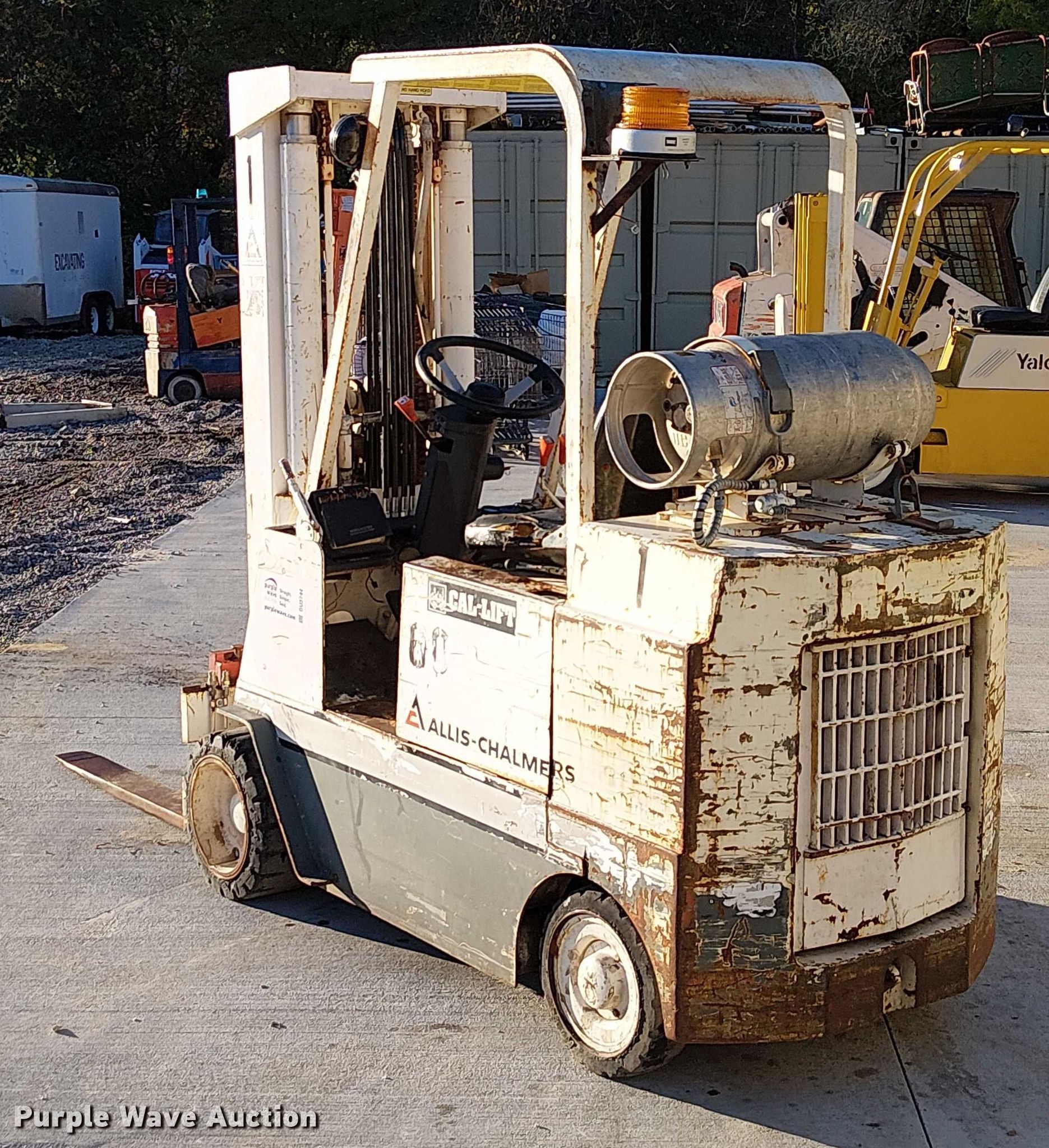 Purple Wave is selling a used Warehouse Forklift in Kansas. This item is a Allis Chalmers ACC55K L PS forklift with the following: Hours: 8,444 on meter, Serial: AVP514641