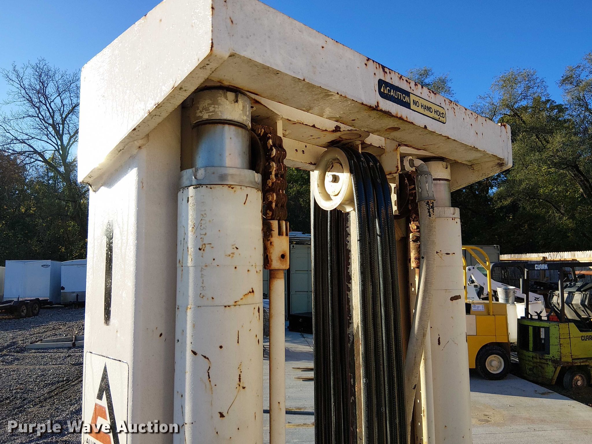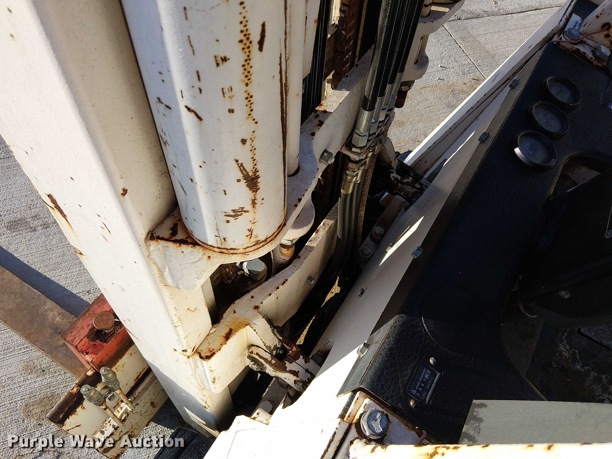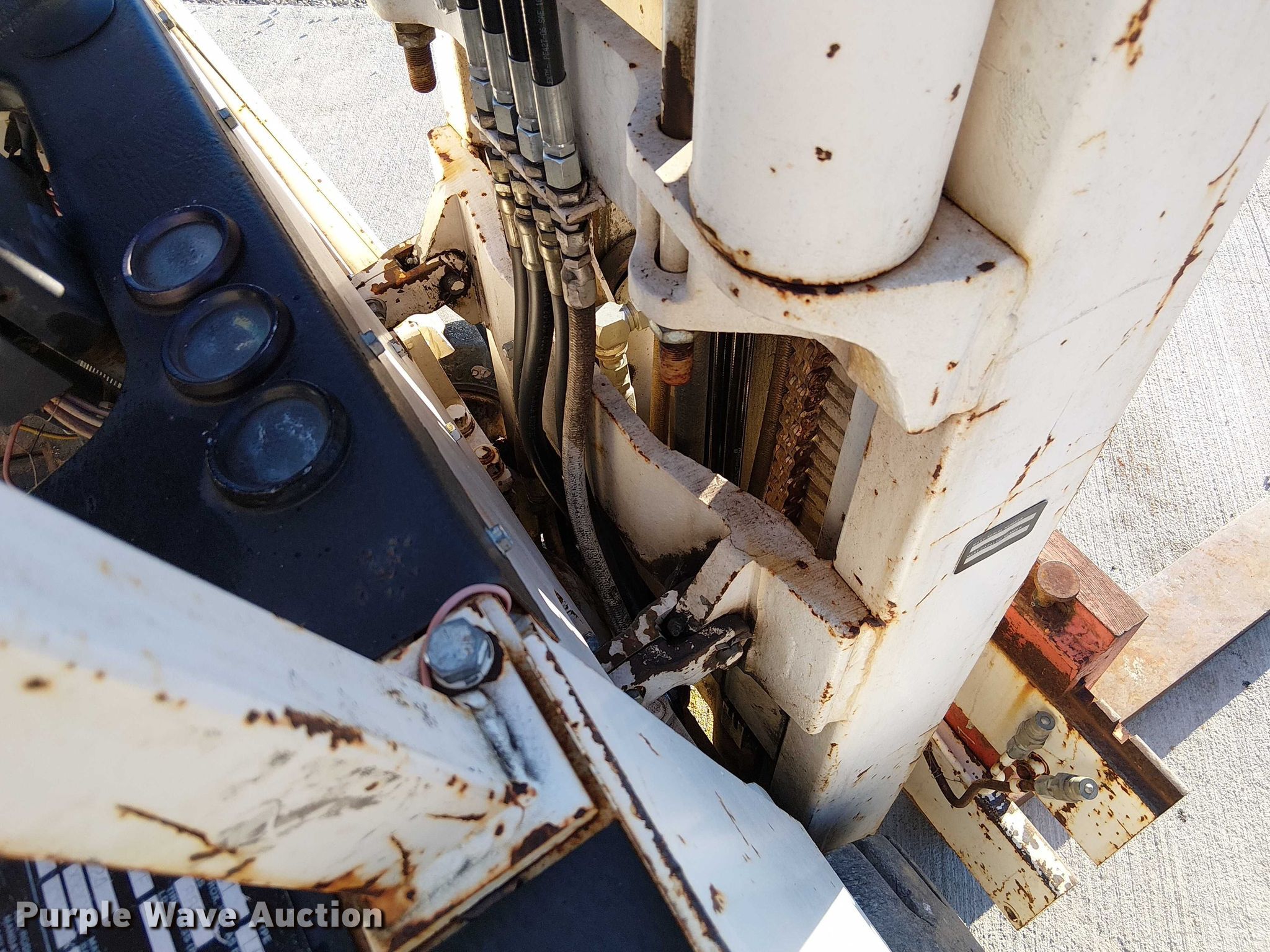 Allis Chalmers ACC55K L PS forklift. Hours: 8,444 on meter, Serial: AVP514641. Engine Allis Chalmers, Cylinders: 4, Fuel type: LPG LP bottle: Not included. Transmission Powershift. Operators station OROPS, Canopy. Features Maximum lift capacity: 5,100 lbs, Maximum lift height: 186", Collapsed mast height: 83", Mast stages: 3, Mast tilt, Fork length: 42". Tires Solid. Notes Right rear tire damaged. Tonganoxie, KS 66086