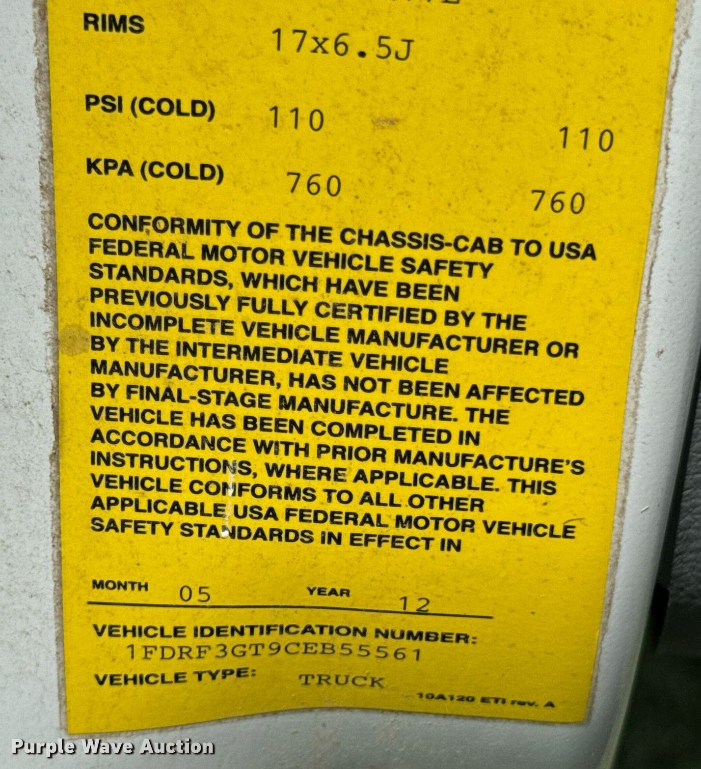 Purple Wave is selling a used 3/4 or 1 Ton Pickup or Van in Oklahoma. This item is a 2012 Ford F350 Super Duty utility bed pickup truck with the following: Miles: Unknown, VIN: 1FDRF3GT9CEB55561