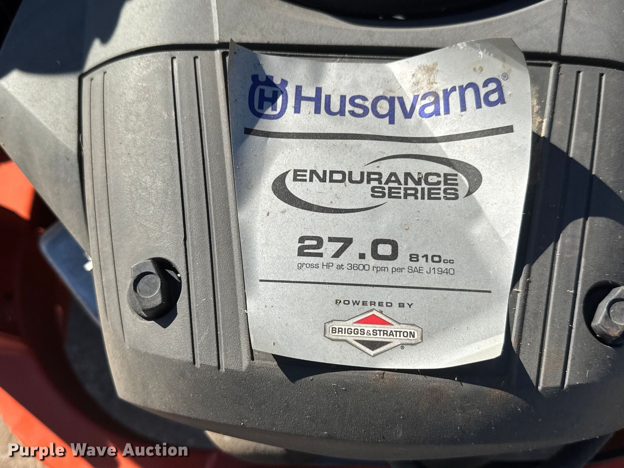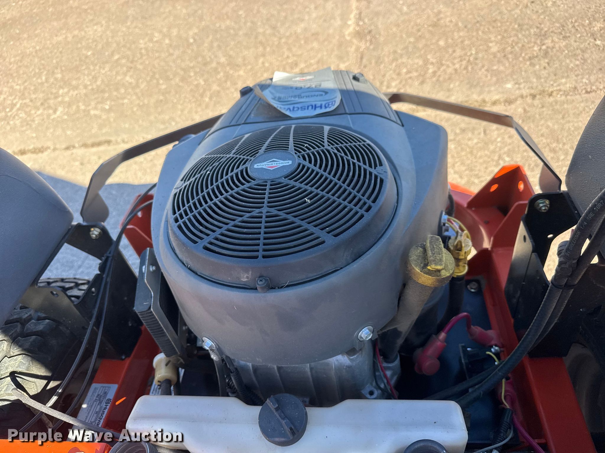 2006 Husqvarna MZ 61 ZTR lawn mower. Hours: Unknown, Cutting width: 61", Serial: 060514B003003. Engine Briggs & Stratton Endurance Series, Displacement: 810 cc, Cylinders: 2, Fuel type: Gas, HP: 27. Transmission Hydrostatic. Tires Front: 13x6.50-6, Rear: 22x10.00-10. Notes Non-operational hour meter. Pratt Oilfield Service, Inc. Retirement - Open inspection December 2, 2025. Pratt, KS 67124