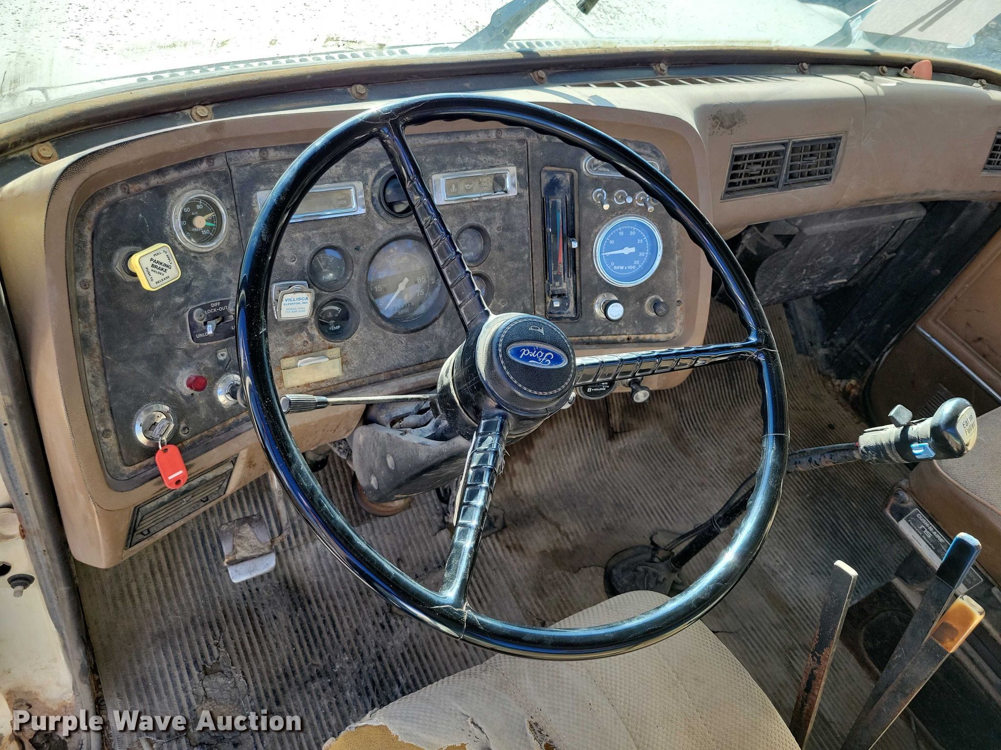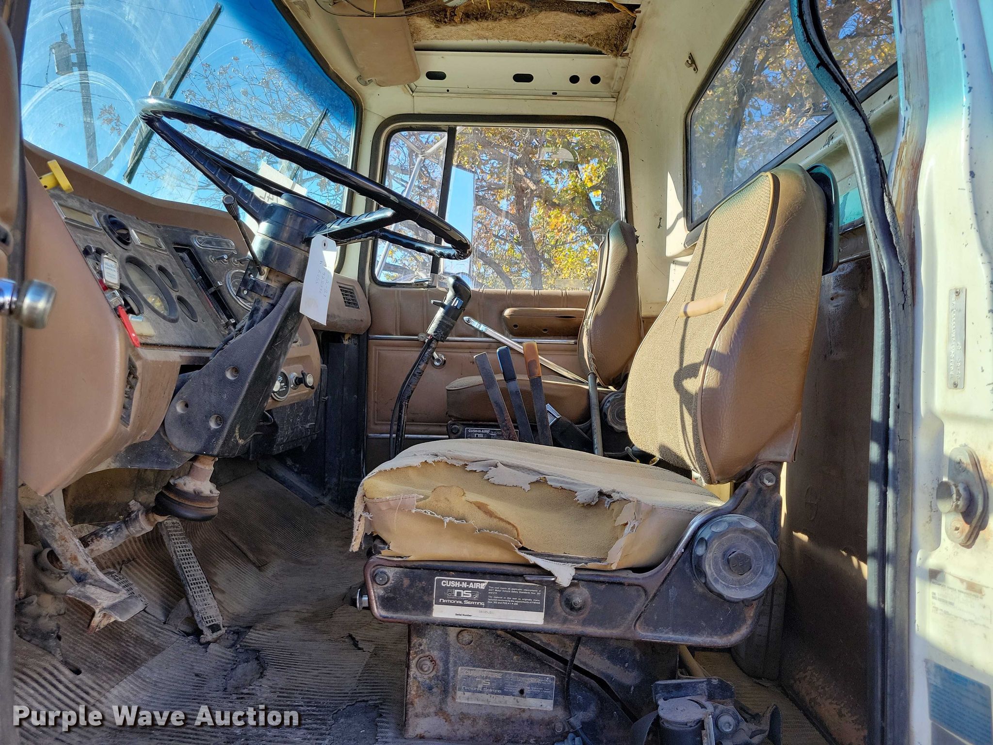 This 1988 Ford L8000 truck cab and chassis will sell to the highest bidder regardless of price.
