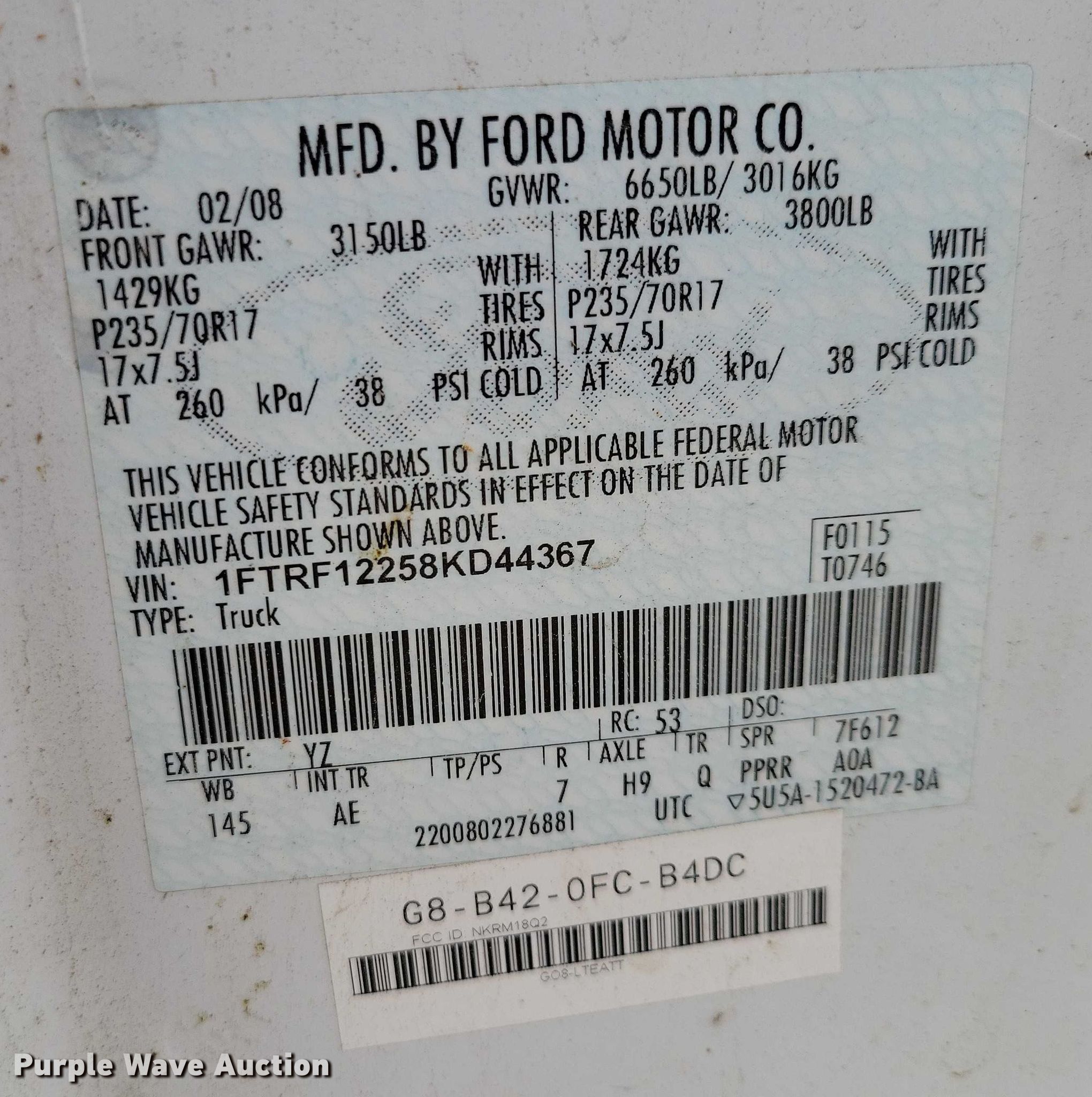 Purple Wave is selling a used 1/2 Ton Pickup or Van in Iowa. This item is a 2008 Ford F150 pickup truck with the following: Miles: 181,212 on odometer, VIN: 1FTRF12258KD44367