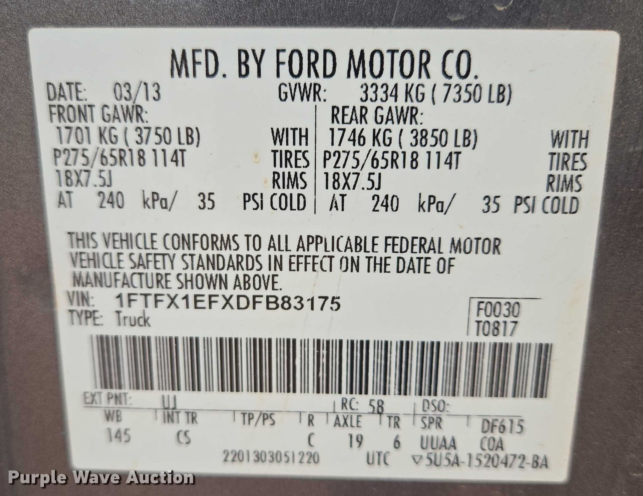 - VIN: 1FTFX1EFXDFB83175