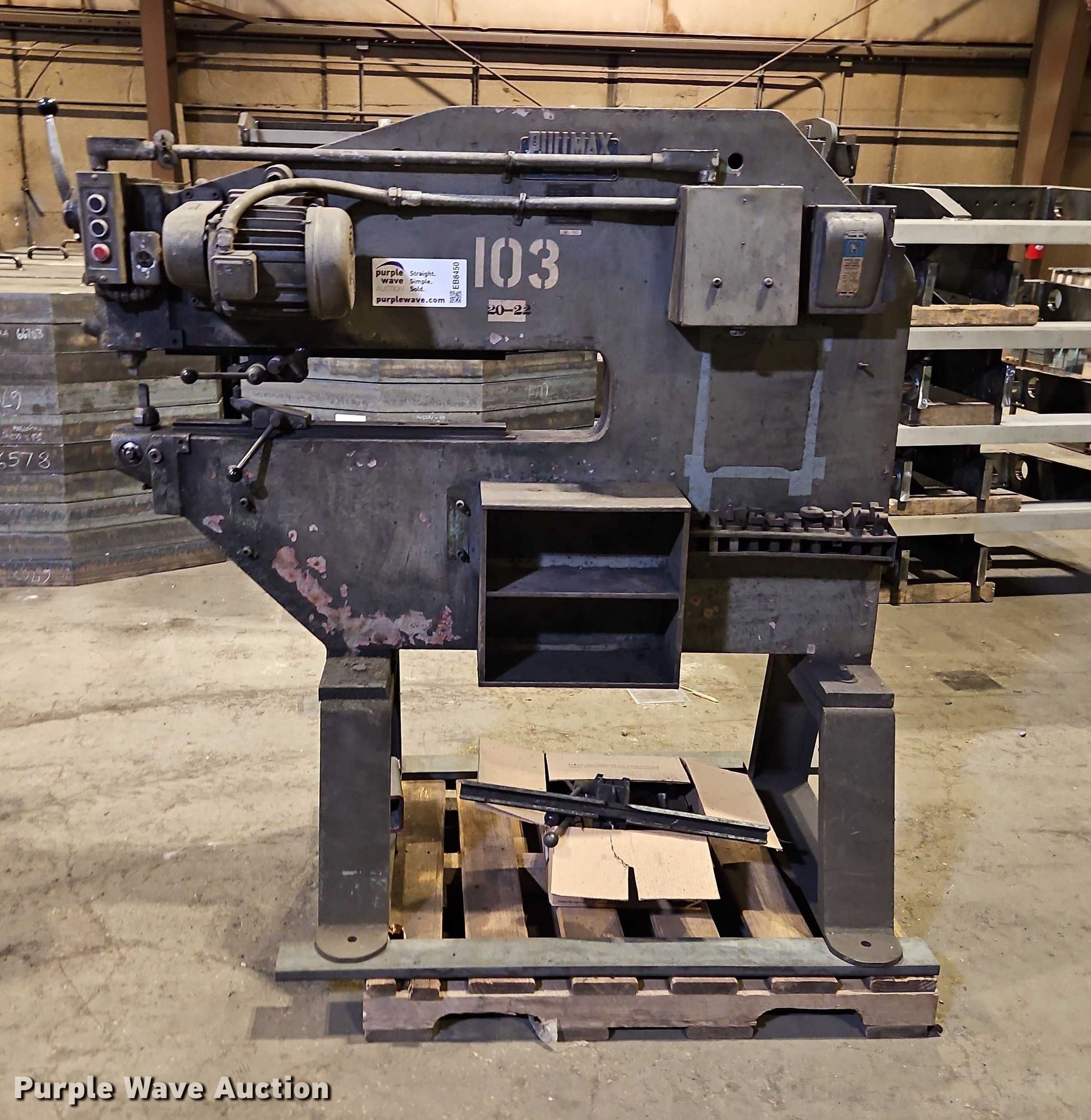 Purple Wave is selling a used Tools in Kansas. This item is a Pullmax P6 shearing and forming machine with the following: Serial: 58582, Volts: 220