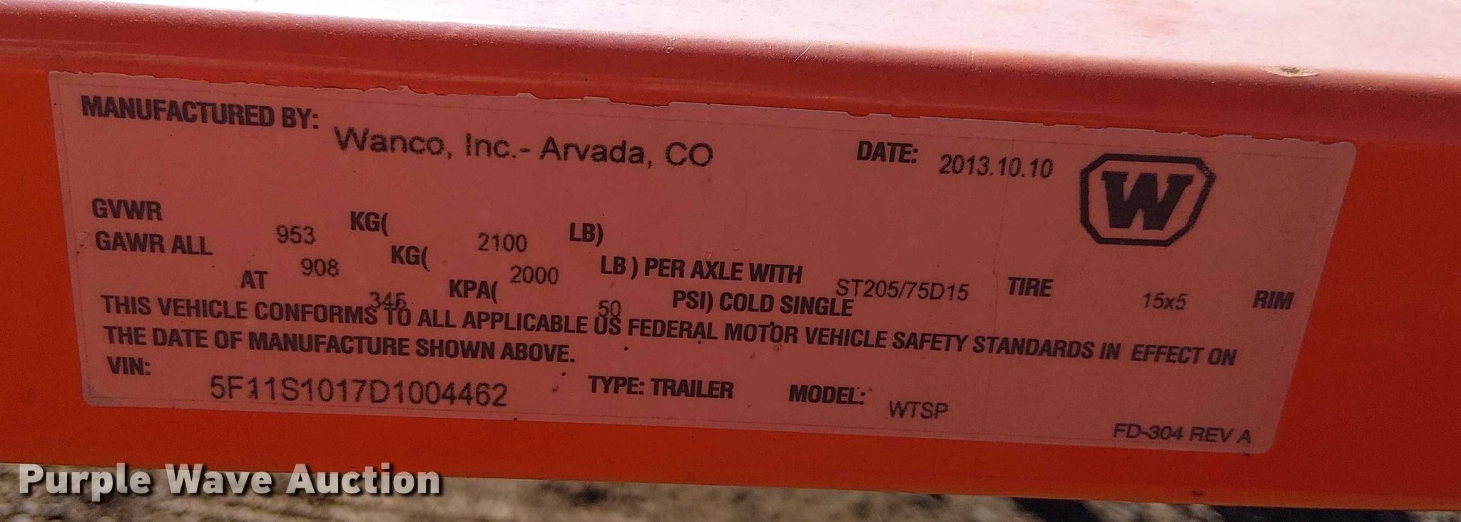Purple Wave is selling a used Road Safety Equip. in Arizona. This item is a 2013 Wanco WTSP arrow board trailer with the following: VIN: 5F11S1017D1004462, Unit #: RE17034