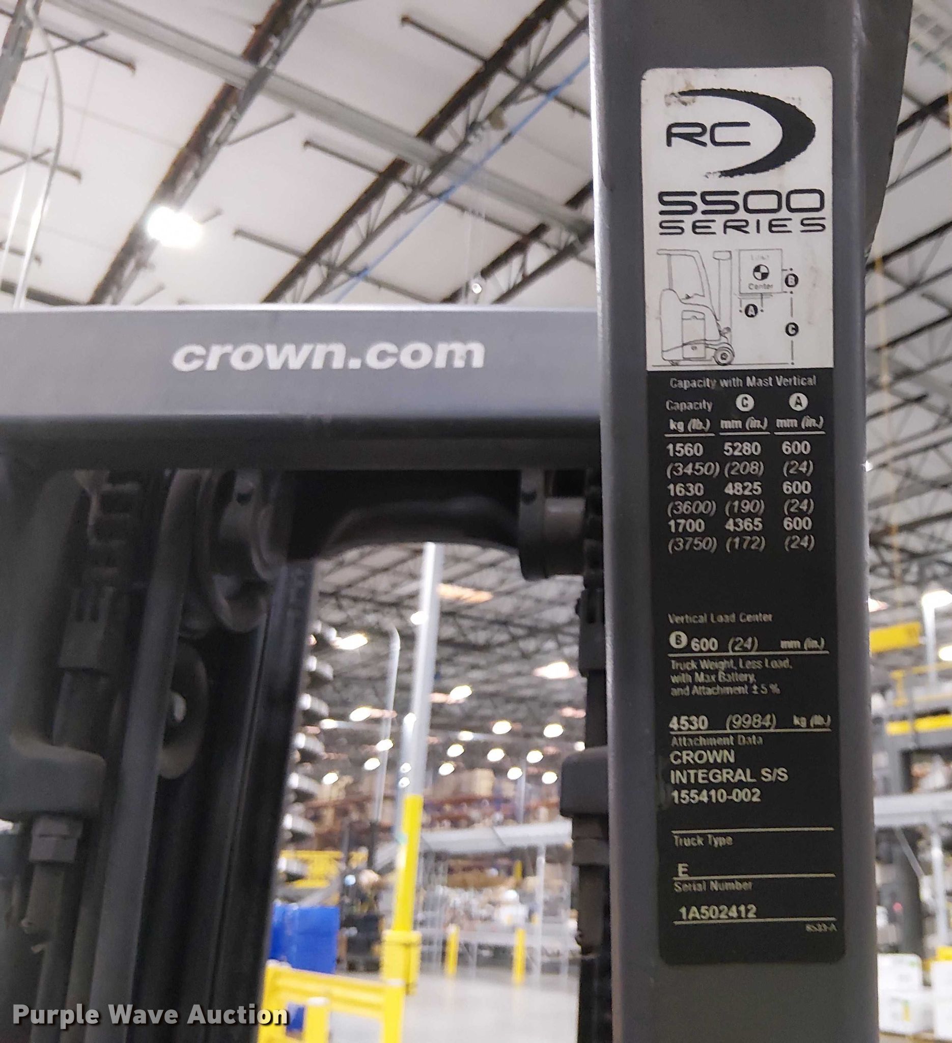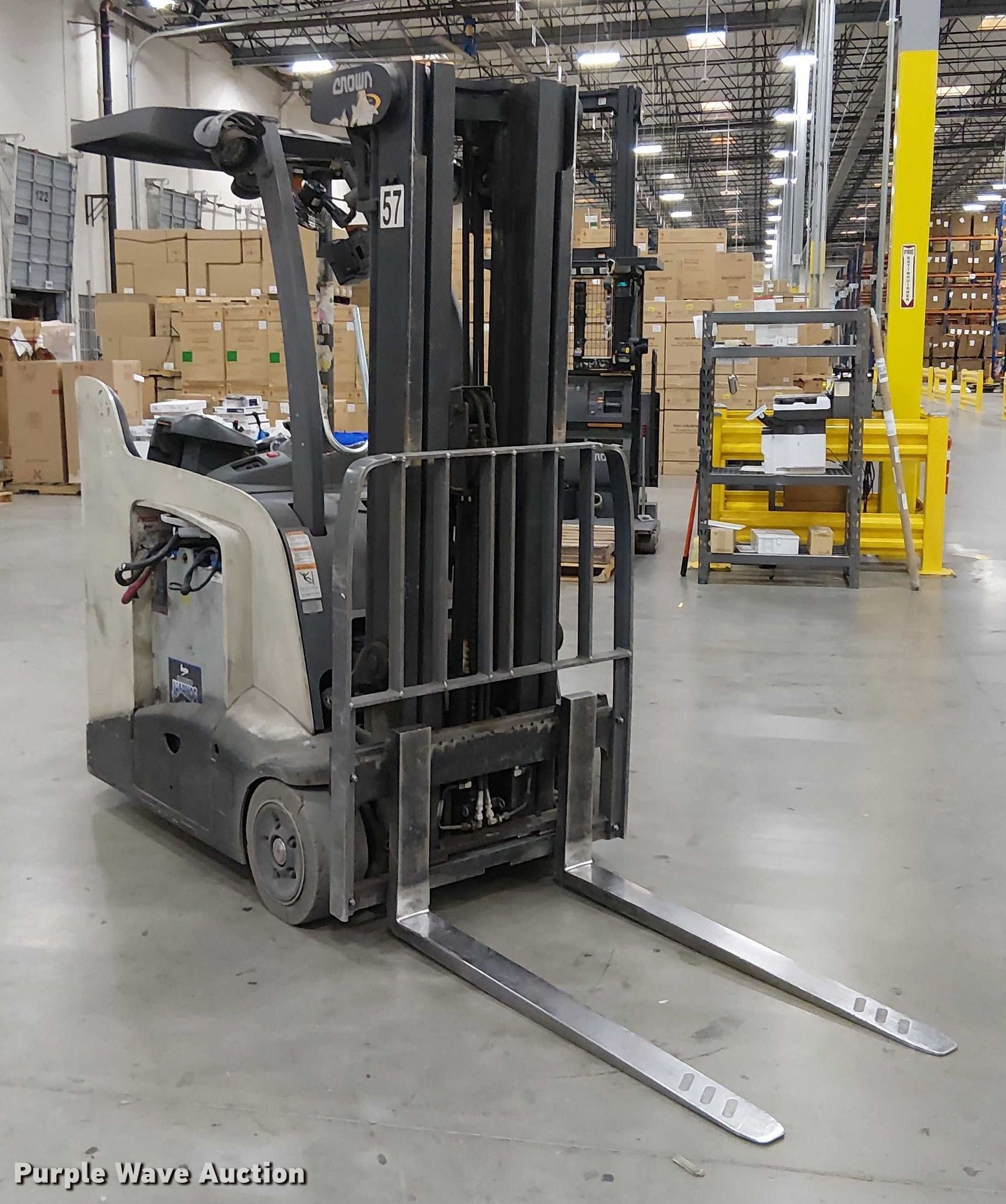Purple Wave is selling a used Warehouse Forklift in California. This item is a 2017 Crown RC5545-40 forklift with the following: Hours: 14,466 on meter, Miles or hours may vary, unit still in use, Serial: 1A502412, Unit #: SFS2649