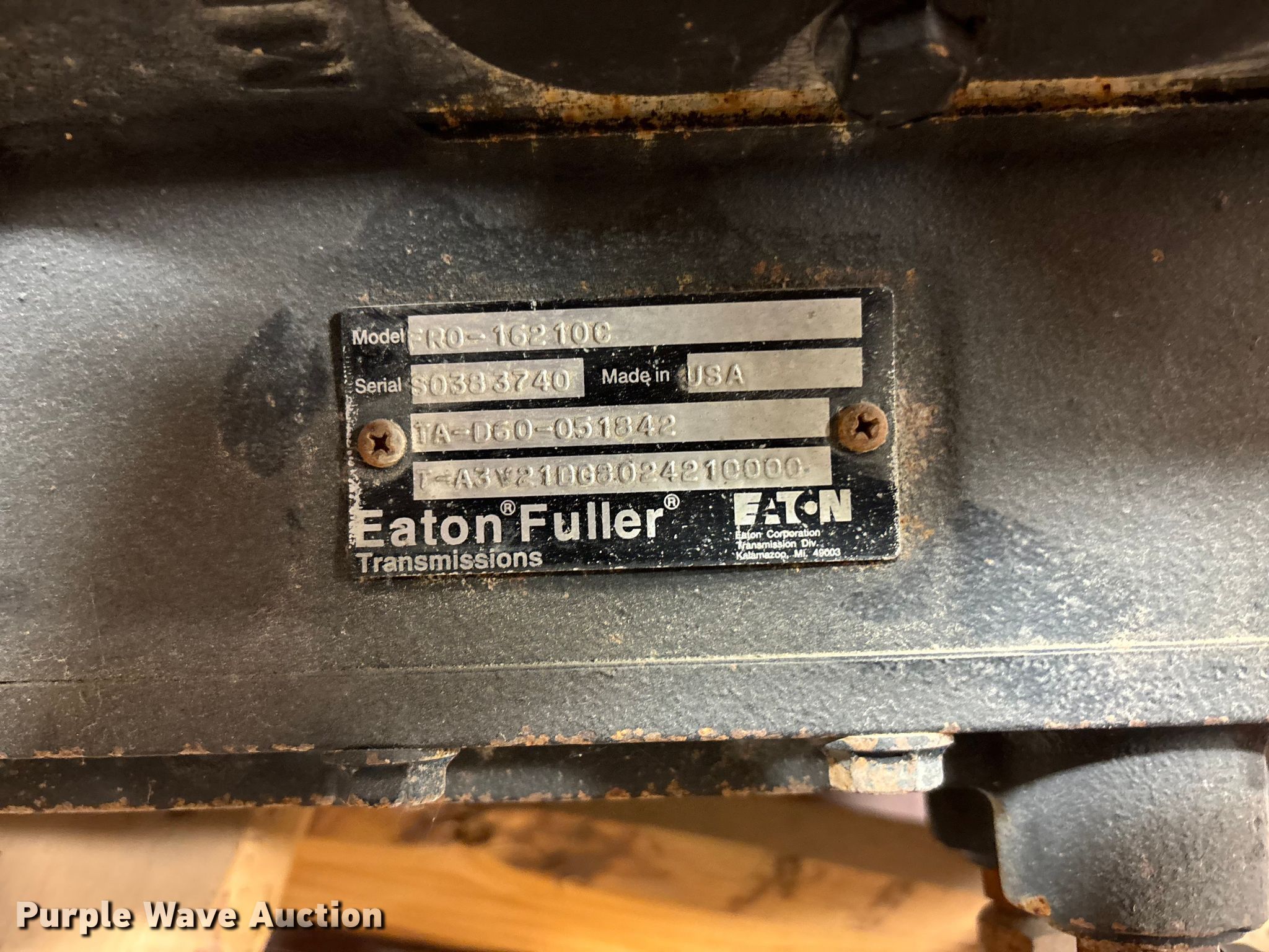 Purple Wave is selling a used Automotive Parts or Acces. in Kansas. This item is a Eaton Fuller FRO–162100 transmission with the following: Serial: S0383740