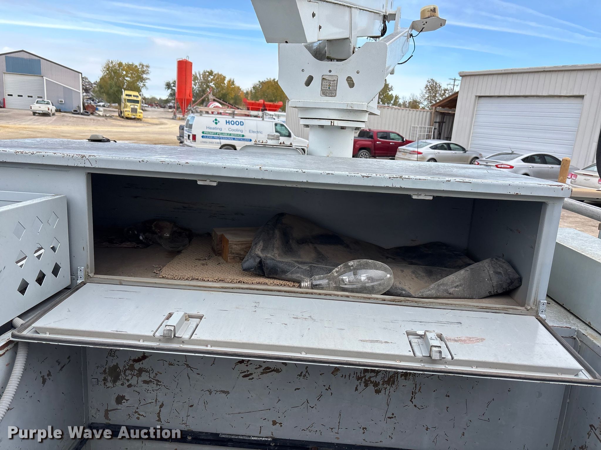 1999 Chevrolet C3500 bucket truck. Miles: 236,523 on odometer, VIN: 1GBKC34J3XF083987. Engine Displacement: 7.4L, Cylinders: 8, Fuel type: Gas. Transmission Automatic. Chassis Axles: Single, Suspension: Spring, Brakes: Hydraulic, GVWR: 15,000 lbs. Interior AC, Heat. Features Bed Utility bed, Steel Weld 108-AL, Serial: 9108–095, Length: 11' 6", Width: 94", Boom Mast height: 32', Maximum lift capacity: 350 lbs, Boom type: Articulating, Man basket, Boom controls Ground, Platform/ basket.. Tires Size: 225/70R19.5. Notes Windshield chipped or cracked, Contents not included. Kansas title. Title distribution may be delayed up to 14 days from verification of funds. Hood Heating & Air. Concordia, KS 66901