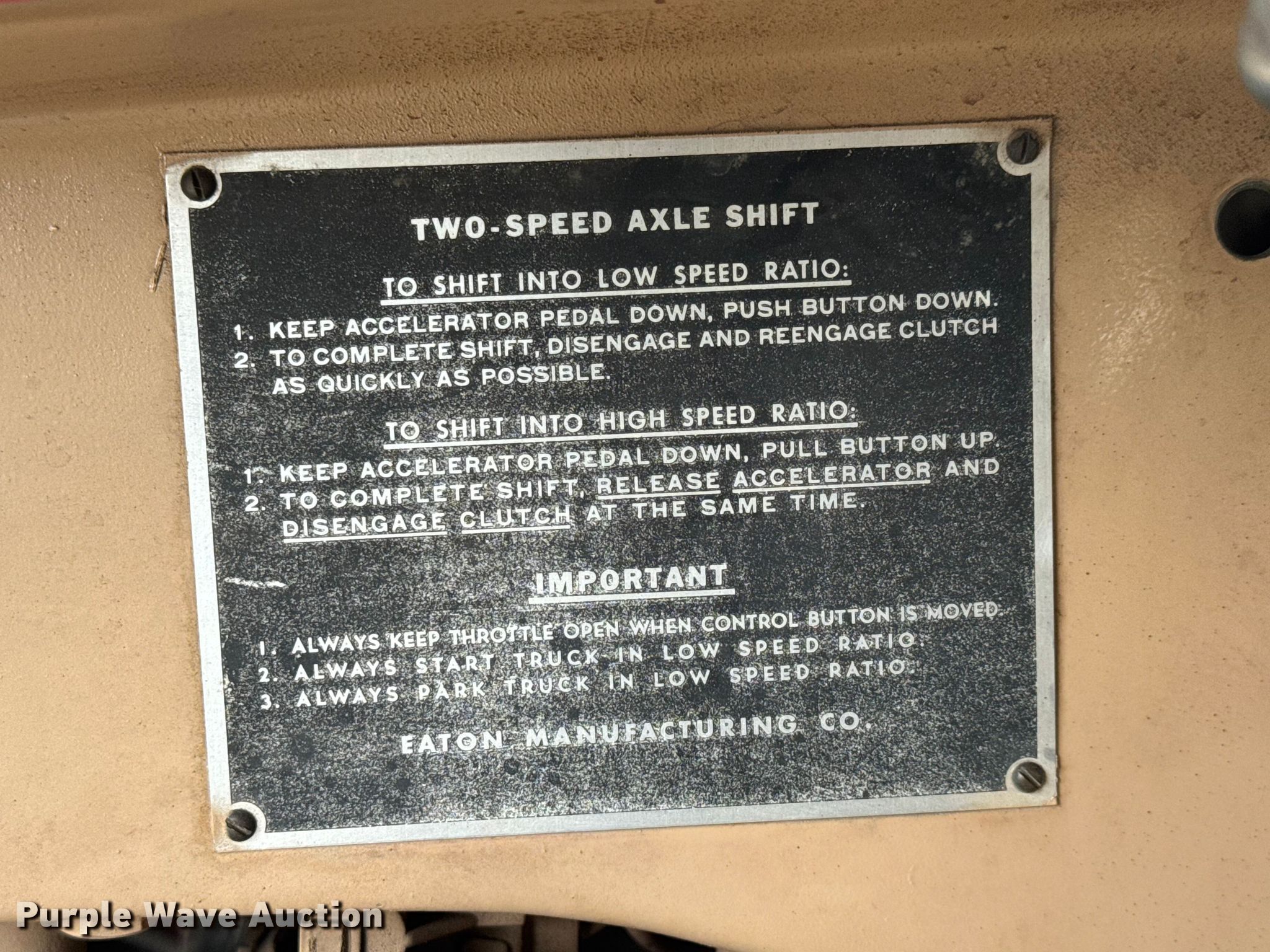 1938 Diamond T 306H truck cab and chassis. Miles: 27,247 on odometer, VIN: 3069210. Engine Cylinders: 8, Fuel type: Gas. Transmission Automatic. Chassis Axles: Single, Suspension: Spring, Truck chassis: 9' 3". Interior Heat. Features Fuel tank: Single. Tires Size: 7.50-20. Notes Rear glass missing, Brake issues. Texas title. Title distribution may be delayed up to 14 days from verification of funds. Buhler, KS 67522