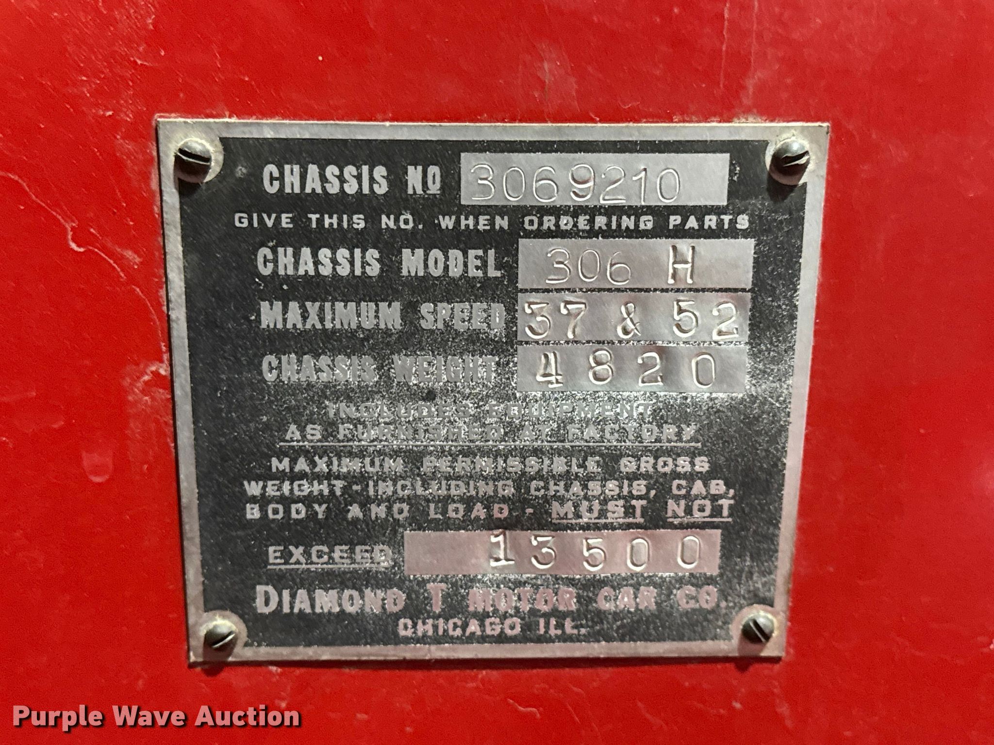Take a look at this used 1938 Diamond T 306H truck cab and chassis being sold on December 3rd, 2025 in the Wednesday December 03 Vehicles and Equipment Auction made by Diamond T. Take a look at all of the item information below or take a look at similar auctions for Trucks.