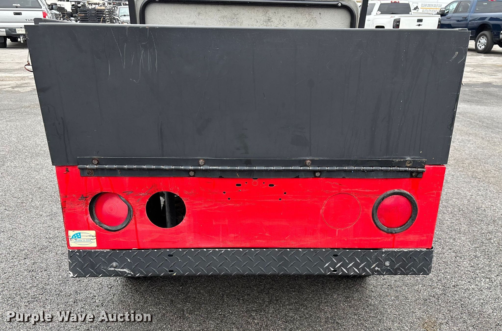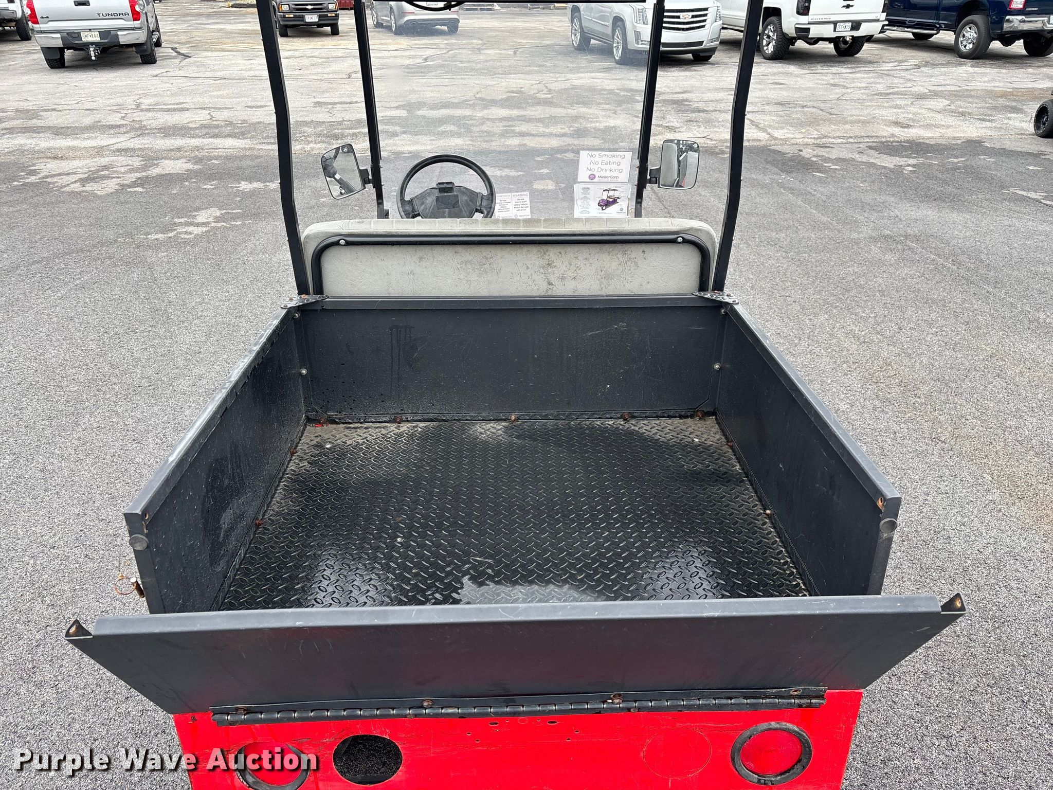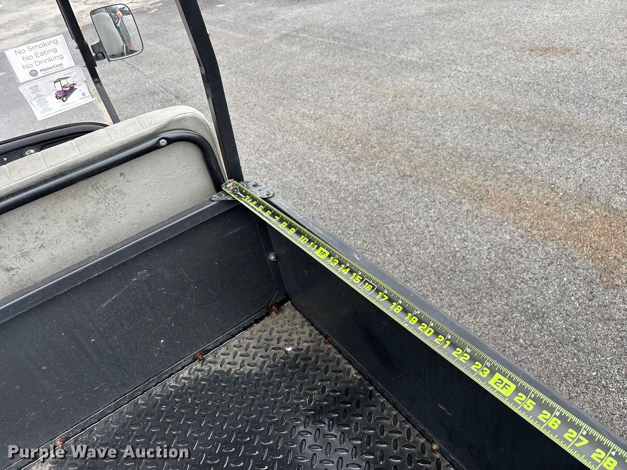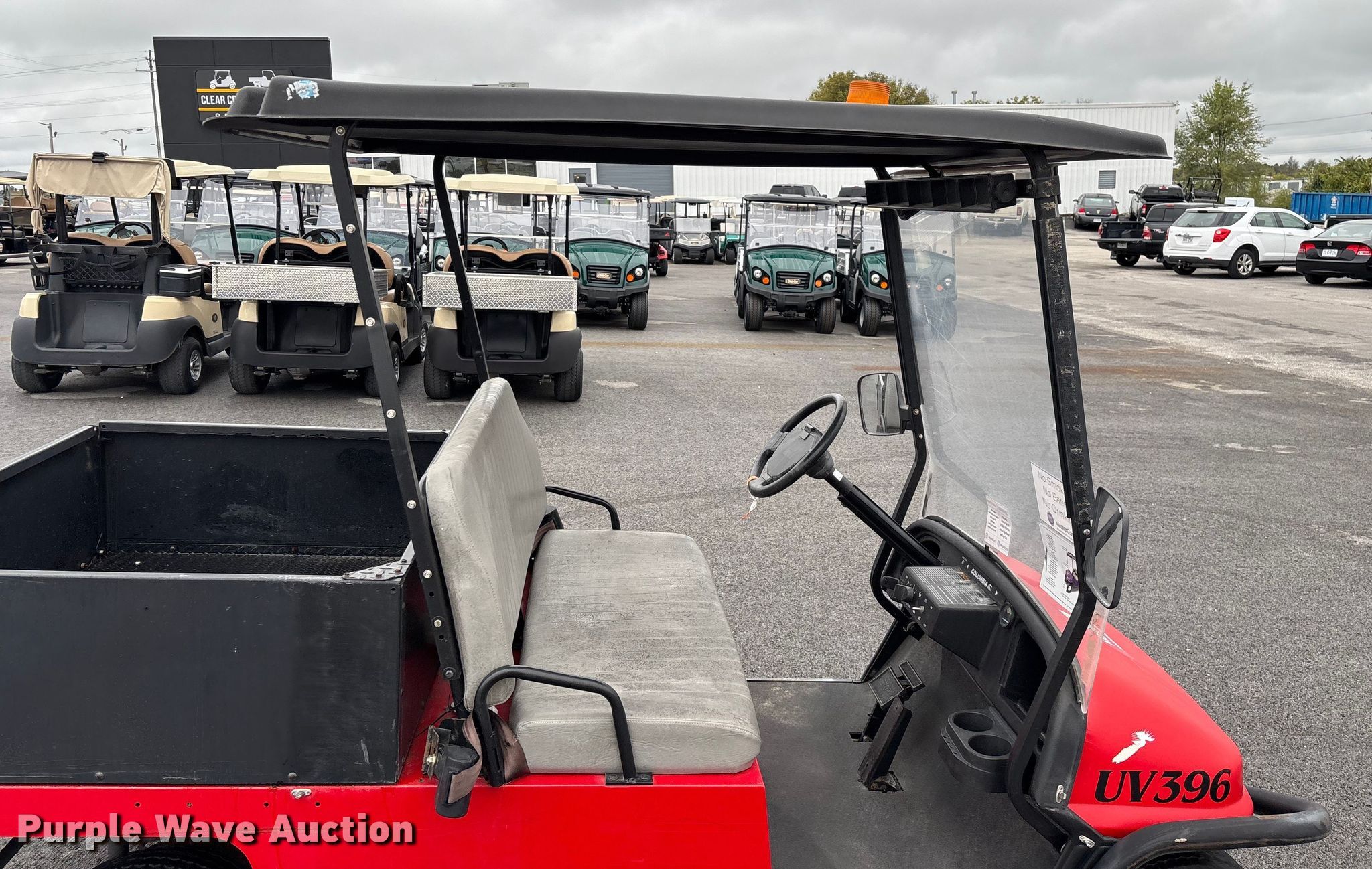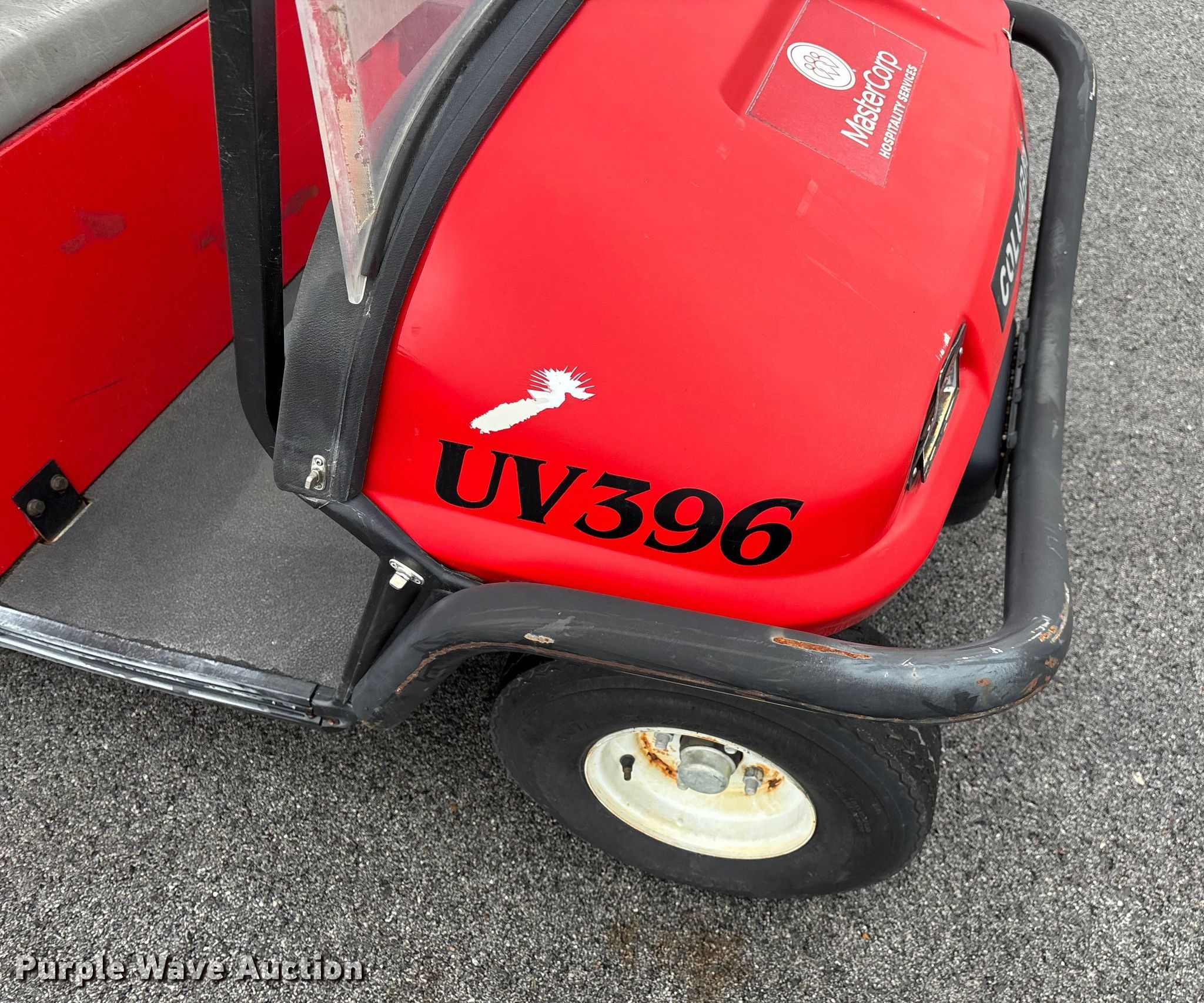 Columbia EU4-S-48 golf cart. VIN: U4SE4-4ZR0284, Unit #: UV396. Electric Motor Volts: 48, Charger: Single phase. Transmission Automatic. Operators station Canopy. Features Box bed 37" L x 43" W, Built in charger. Tires Size: 5.70-8. Notes Tailgate hinge issues, Headlight damage, Taillight damage. Transfer of ownership documentation will be a bill of sale. Clear Creek Golf Car & Utility Vehicles, LLC. Ozark, MO 65721