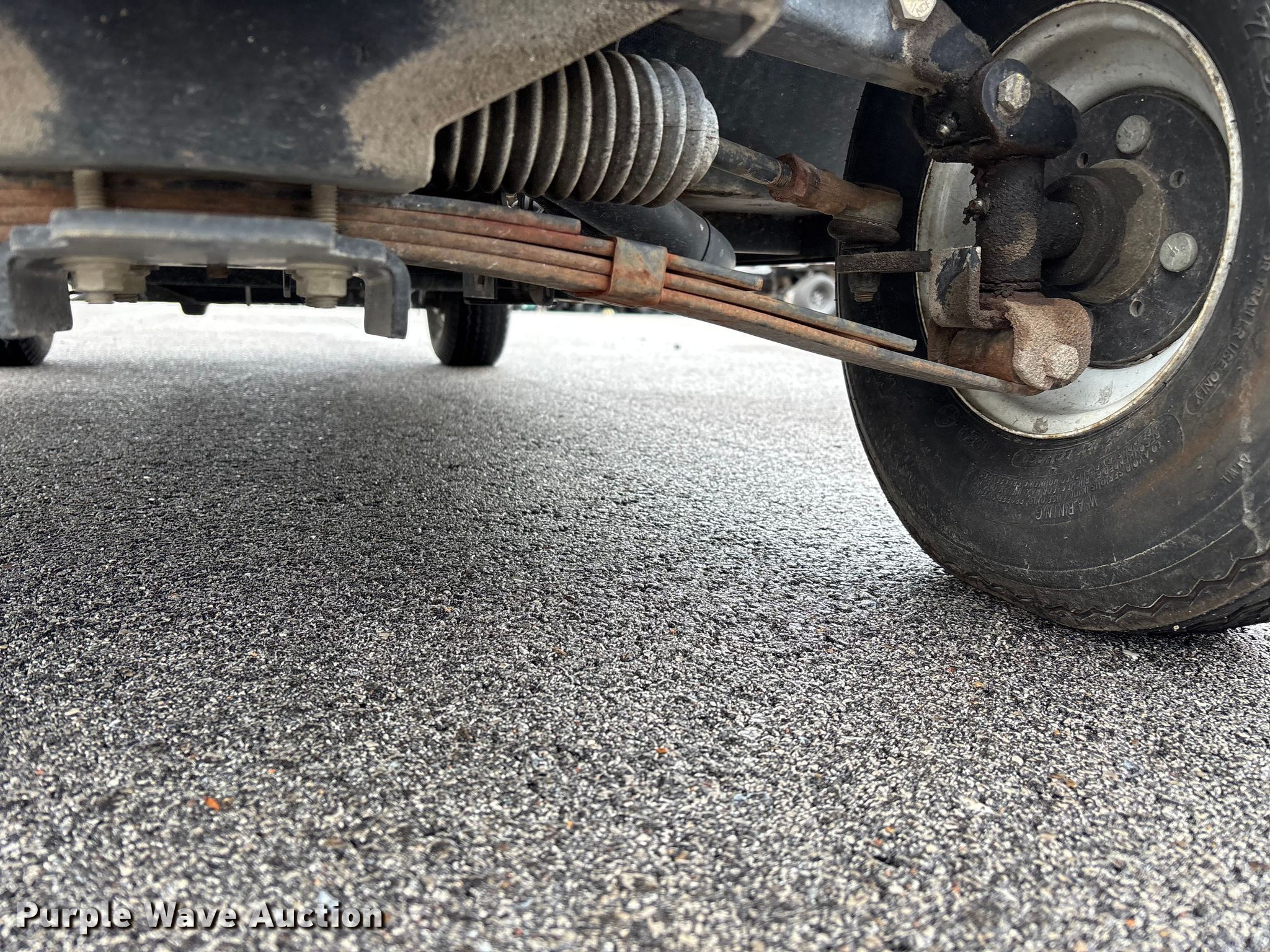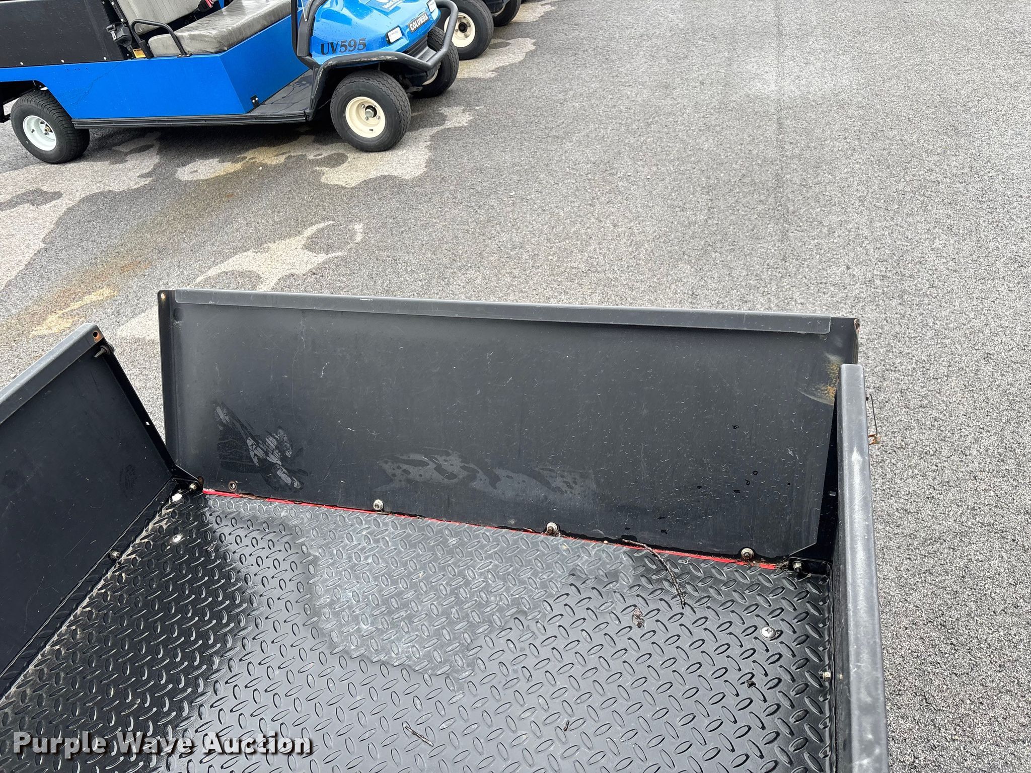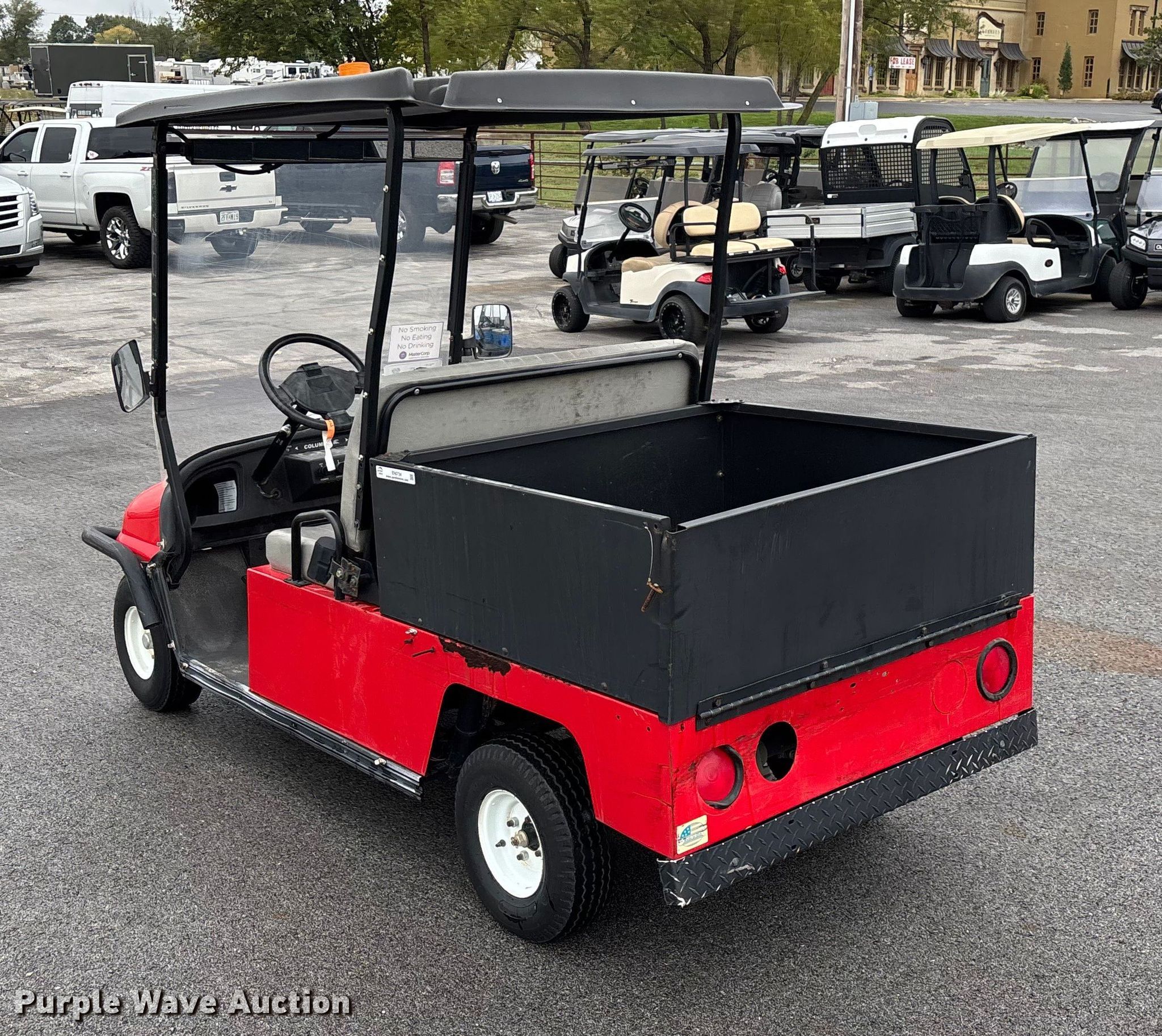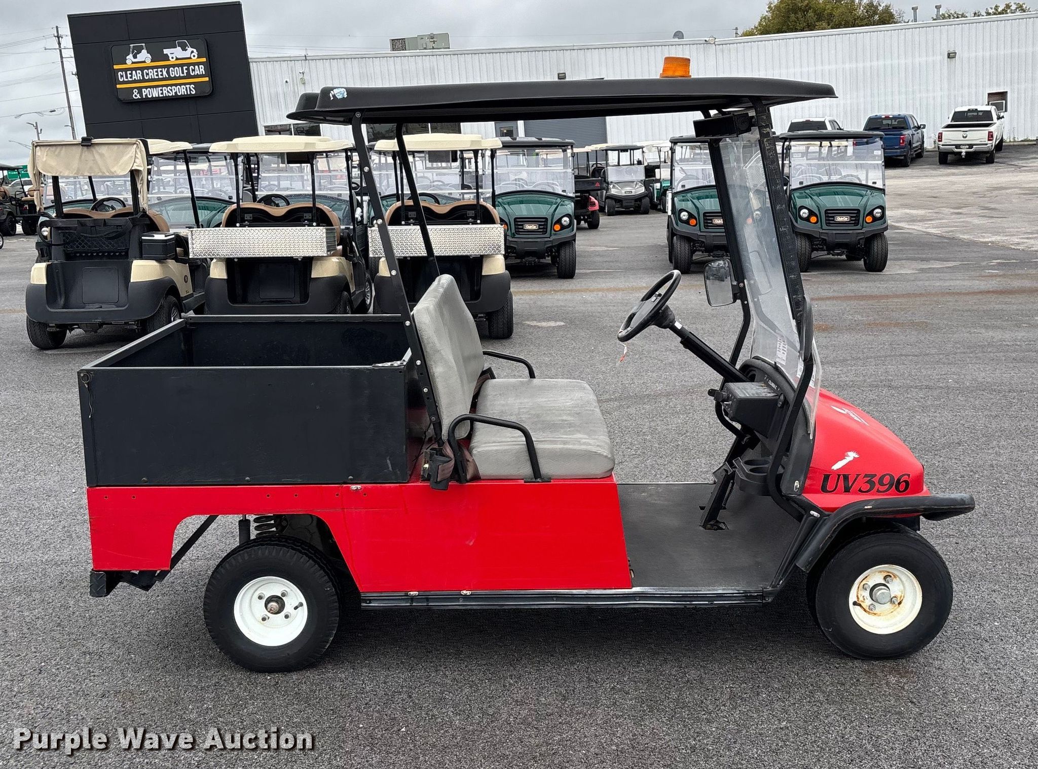 Columbia EU4-S-48 golf cart. VIN: U4SE4-4ZR0284, Unit #: UV396. Electric Motor Volts: 48, Charger: Single phase. Transmission Automatic. Operators station Canopy. Features Box bed 37" L x 43" W, Built in charger. Tires Size: 5.70-8. Notes Tailgate hinge issues, Headlight damage, Taillight damage. Transfer of ownership documentation will be a bill of sale. Clear Creek Golf Car & Utility Vehicles, LLC. Ozark, MO 65721