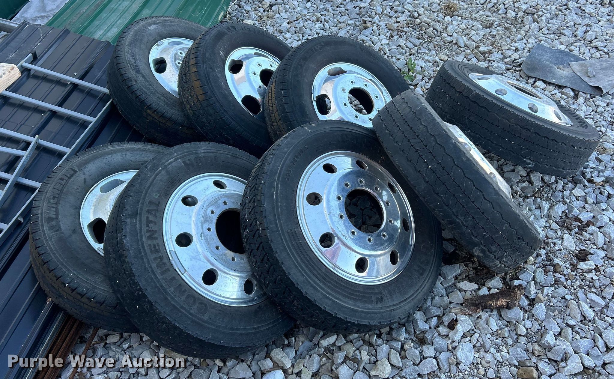 Purple Wave is selling a used Fleet Tires in Illinois. This item is a (8) 225/70R19.5 tires and wheels with the following: (8) 225/70R19.5 tires and wheels. JT's Tree & Crane - Open inspection October 24th from 10:00 a.m. to 2:00 p.m.. 1 Fox Run Drive. Altamont, IL 62411