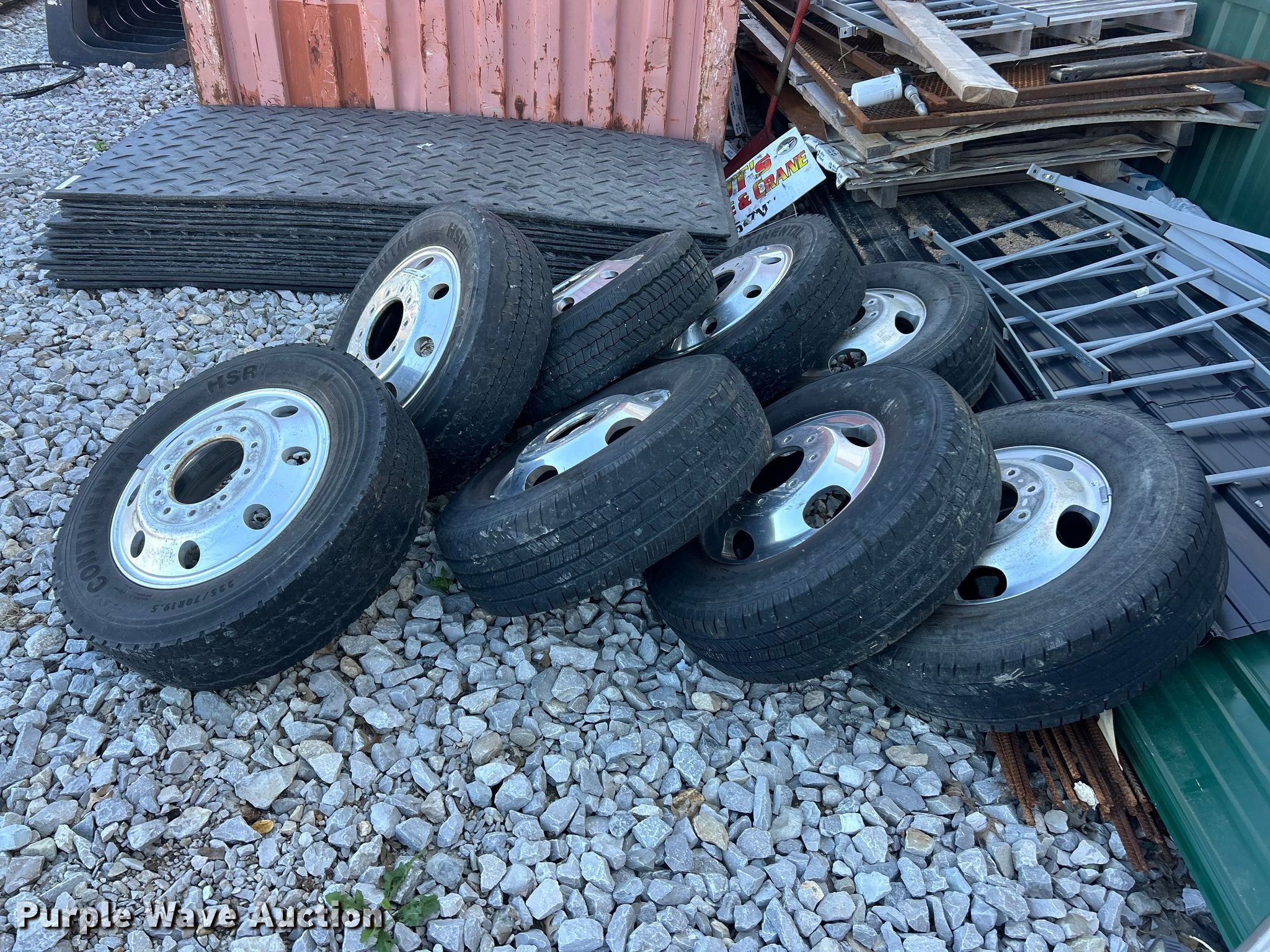 (8) 225/70R19.5 tires and wheels. JT's Tree & Crane - Open inspection October 24th from 10:00 a.m. to 2:00 p.m.. 1 Fox Run Drive. Altamont, IL 62411