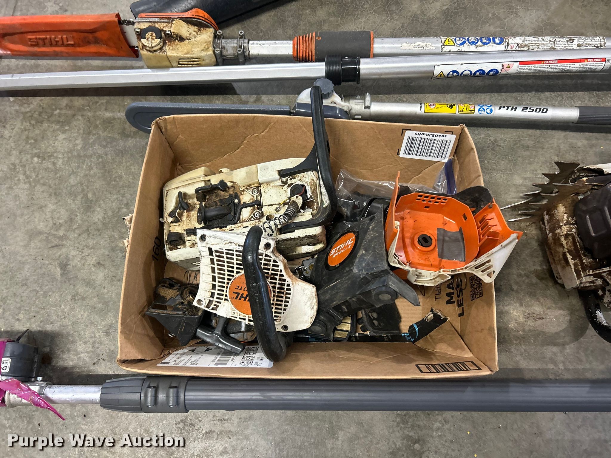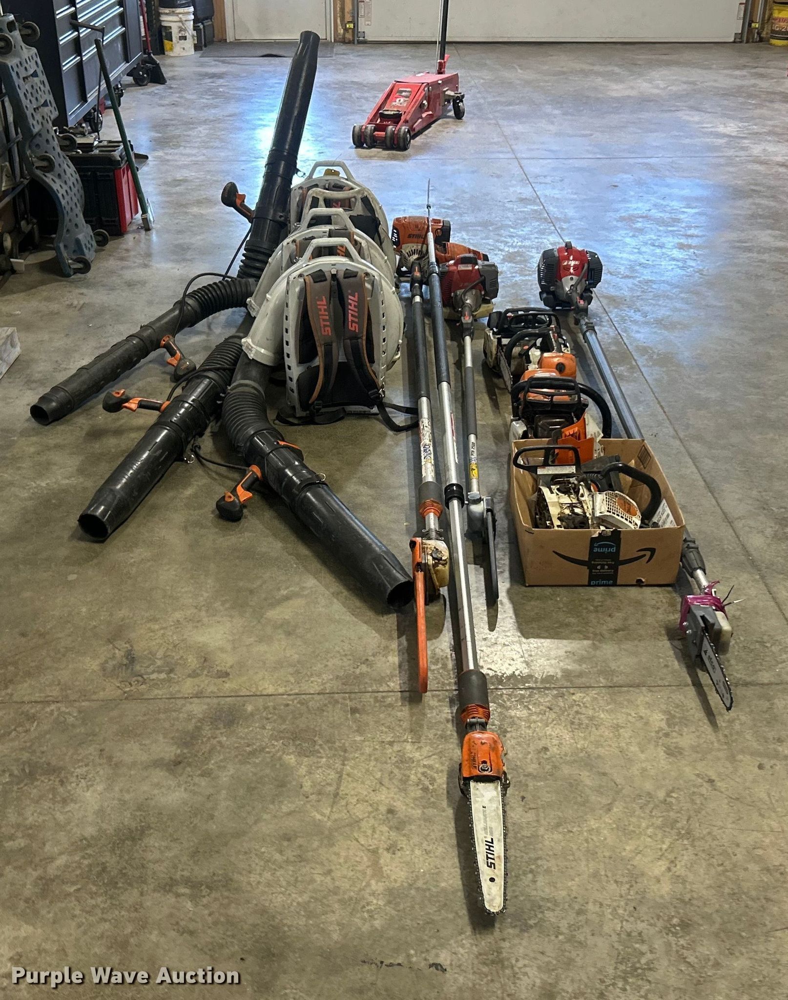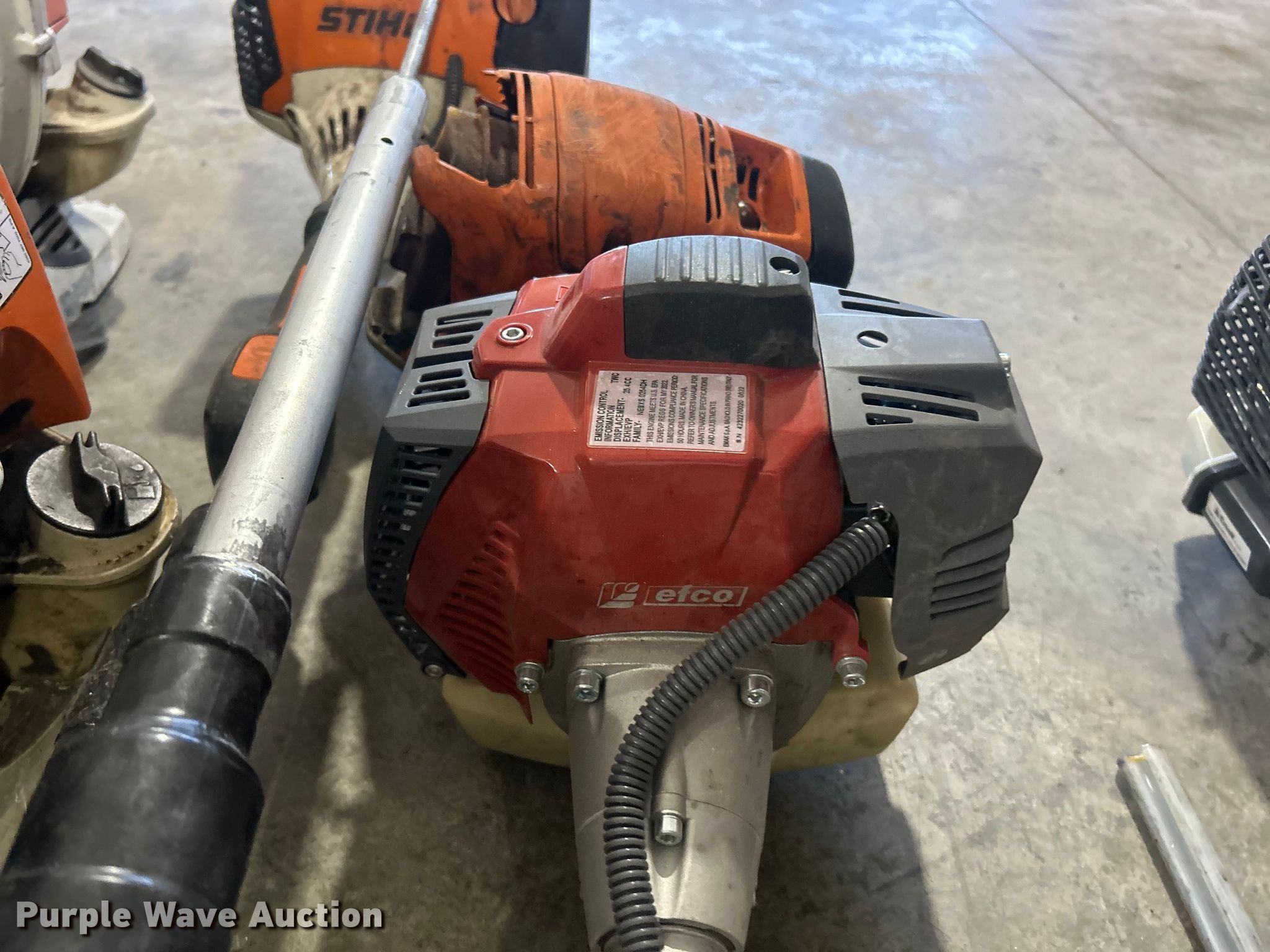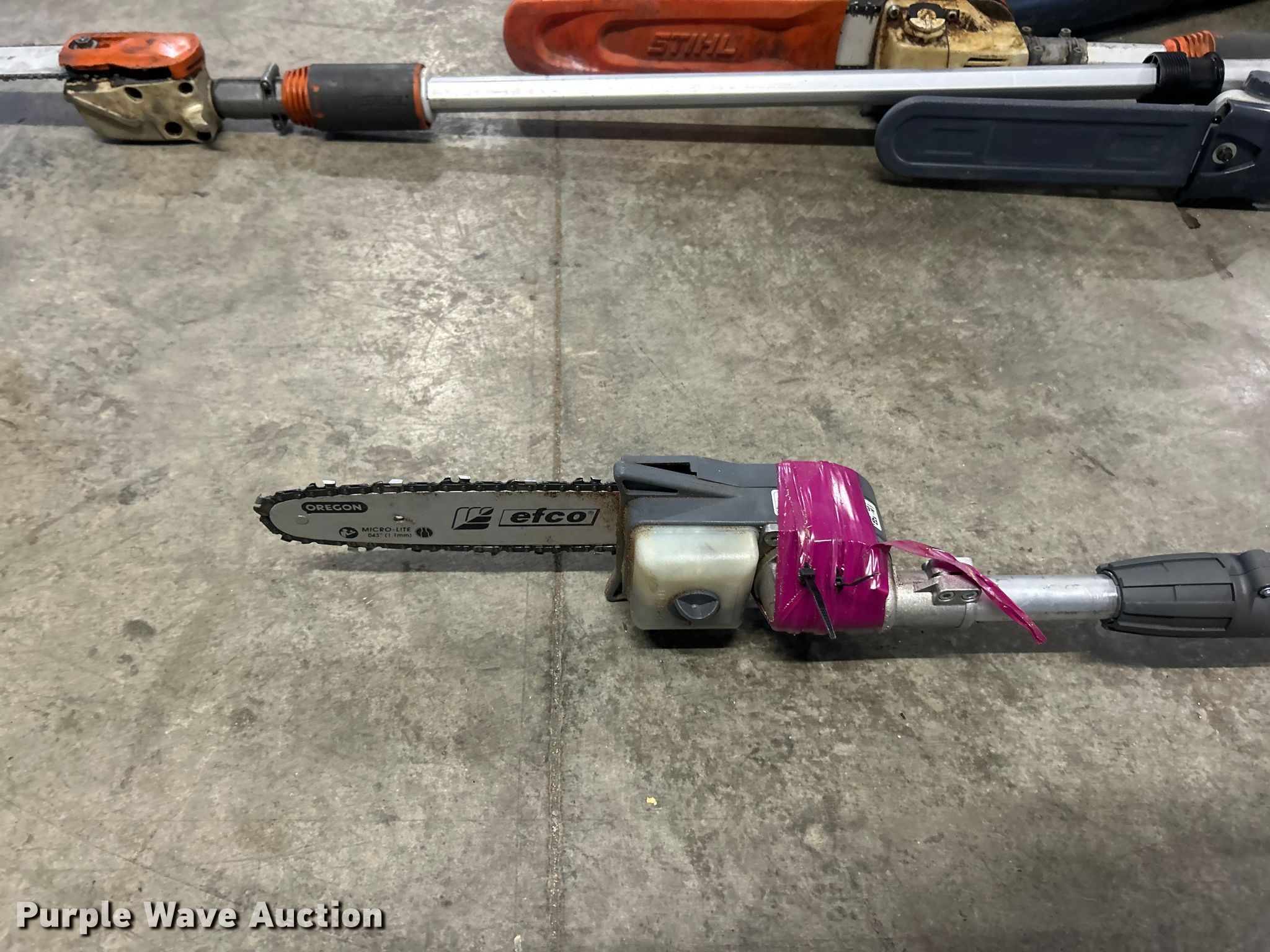 Purple Wave is selling a used Lawn and Garden in Illinois. This item is a Lawn and garden equipment with the following: (4) Stihl Magnum BR800X leaf blowers, One recoil start cord missing, (4) pole saws, Stihl HT 135, Stihl HT 133, Non-operational, Engine separated from pole, Efco PTH 2500, Efco PTX 2710, (2) Stihl MS 201TC chainsaws and more