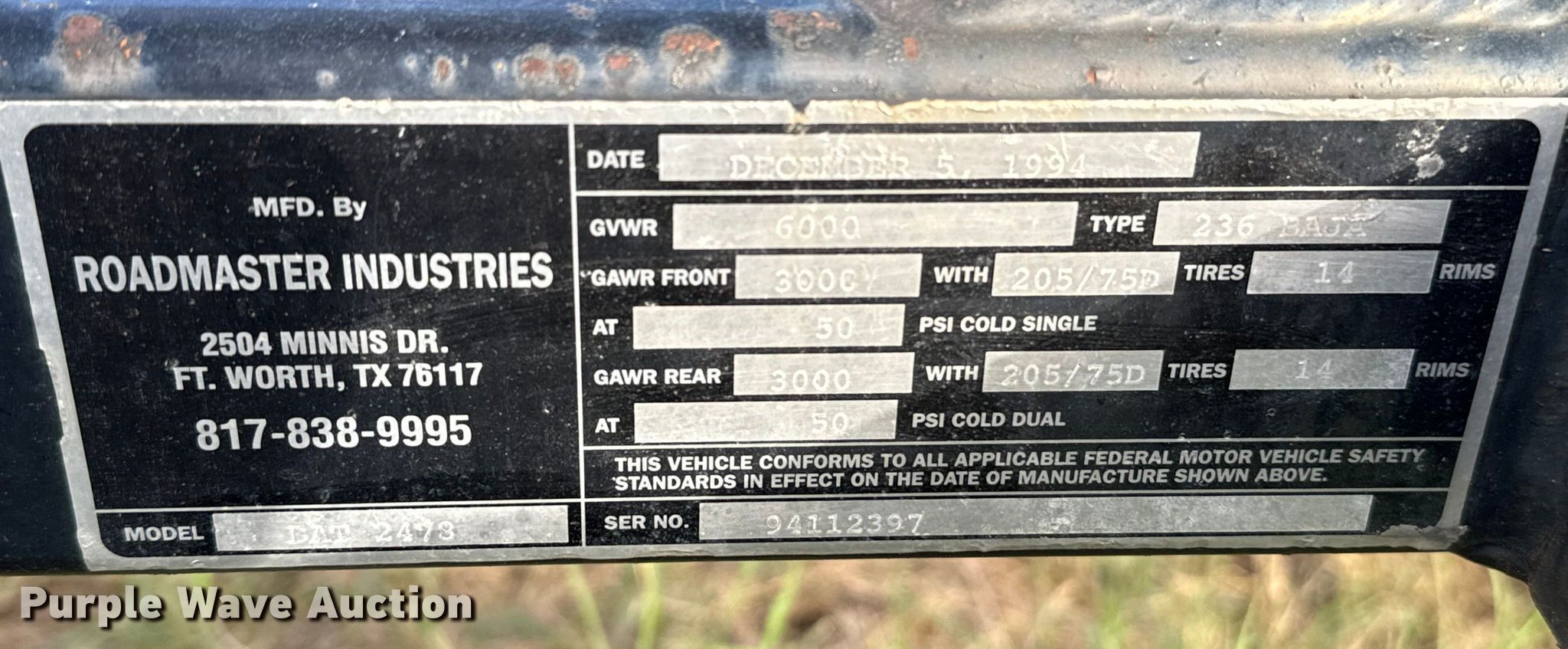 1995 Baja 236 boat. Hours: 777 on meter, Length: 23' 6", Hull ID: AGCA2009J495, Insurance Claim #: 5-812570. Engine Engine type: Inboard, MerCruiser, Serial: 0F511987, Cylinders: 8, Fuel type: Gas, Outdrive Make: MerCruiser, Model: Bravo One, Serial: 0F511987, Propeller: Aluminum. Features Cuddy cabin. Trailer Roadmaster Industries BAT 2473, VIN: 94112397, Overall length: 25', Overall width: 102", GVWR: 6,000 lbs, Ball hitch size: 2", Axles: Tandem, Tire size: ST205/75R14. Notes Dead battery, Water damage, Unknown operating condition. Boat- Oklahoma title. Trailer- Transfer of ownership documentation will be a bill of sale. Title distribution may be delayed up to 14 days from verification of funds.... Oklahoma Farm Bureau Insurance. Seminole, OK 74868