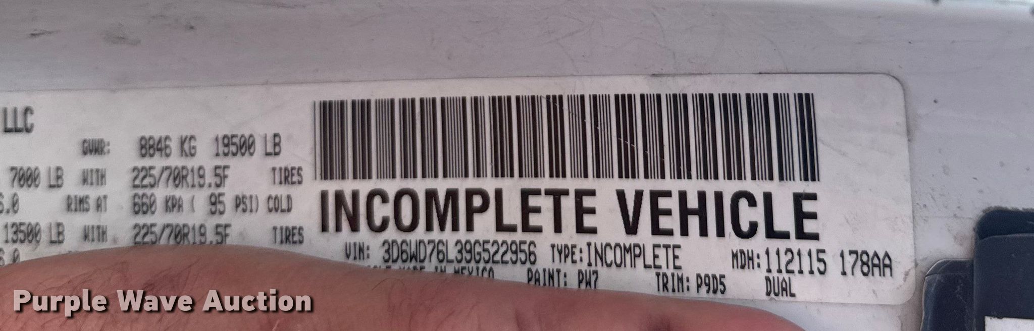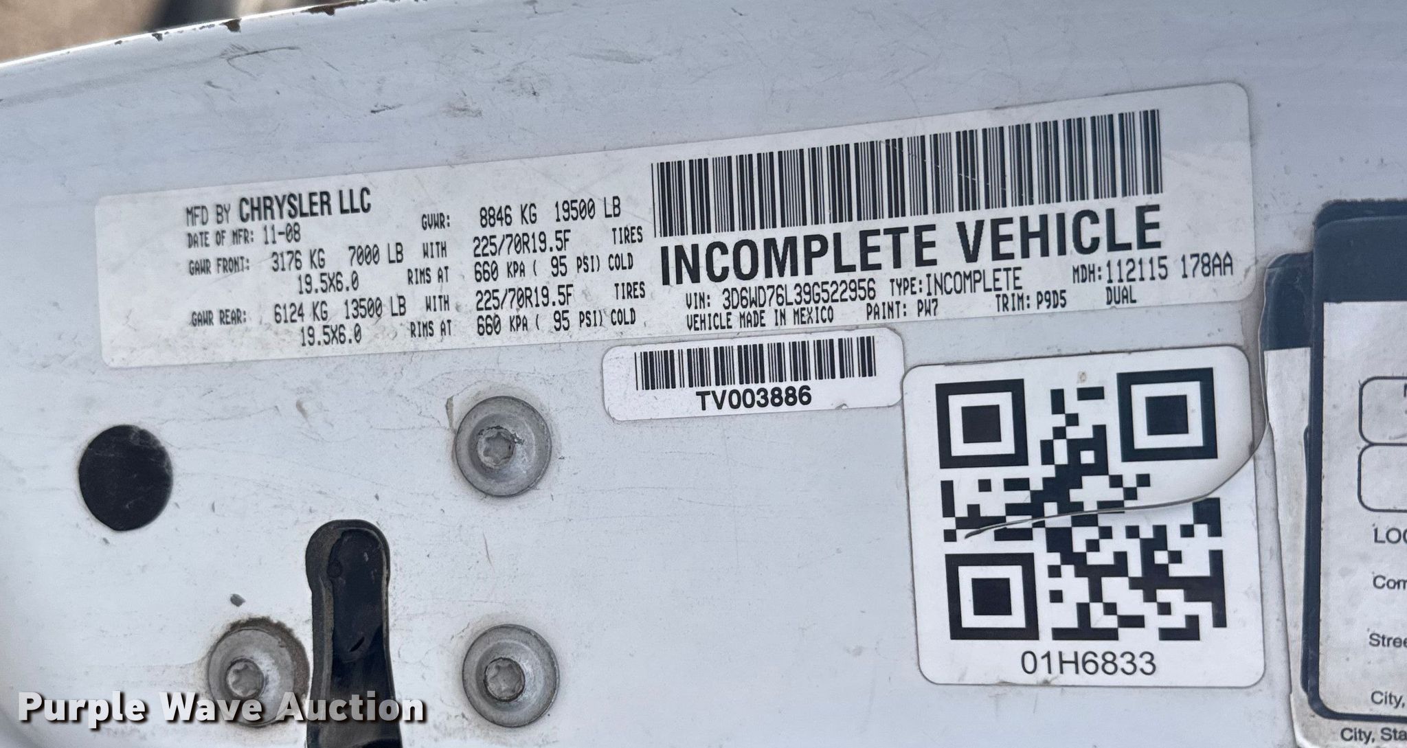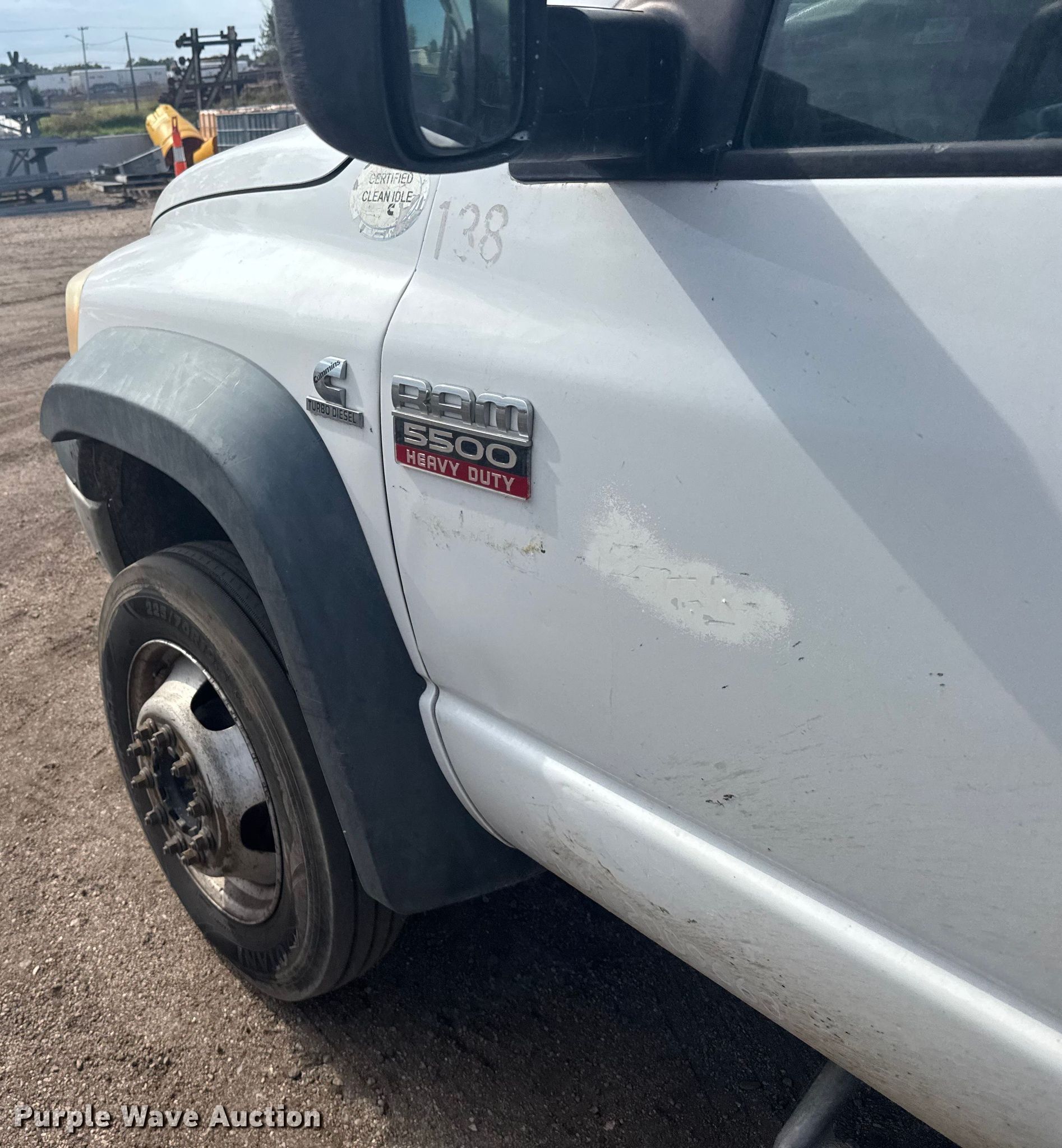 2009 Dodge Ram 5500 flatbed truck. Miles: 289,751 on odometer, VIN: 3D6WD76L39G522956. Engine Displacement: 6.7L, Cylinders: 6, Fuel type: Diesel. Transmission Automatic. Chassis Four wheel drive, Axles: Single, Suspension: Spring, Brakes: Hydraulic, GVWR: 19,500 lbs. Interior AC, Heat, Cruise control, Brake controller. Features Bed Flatbed, Length: 12' 7", Width: 96" Removable sides.. Tires Size: 225/75R19.5. Notes Dash warning indicator: Check engine. Nebraska title. Title distribution may be delayed up to 14 days from verification of funds. Contractor Services Inc. North Platte, NE 69101