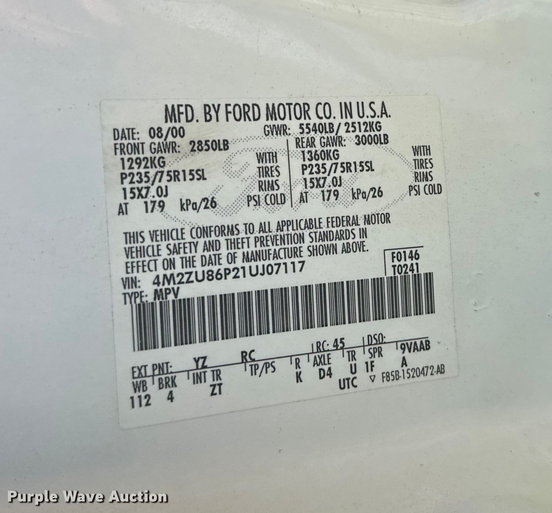 Purple Wave is selling a used Passenger Vehicle in Kansas. This item is a 2001 Mercury Mountaineer SUV with the following: Miles: 151,955 on odometer, VIN: 4M2ZU86P21UJ07117