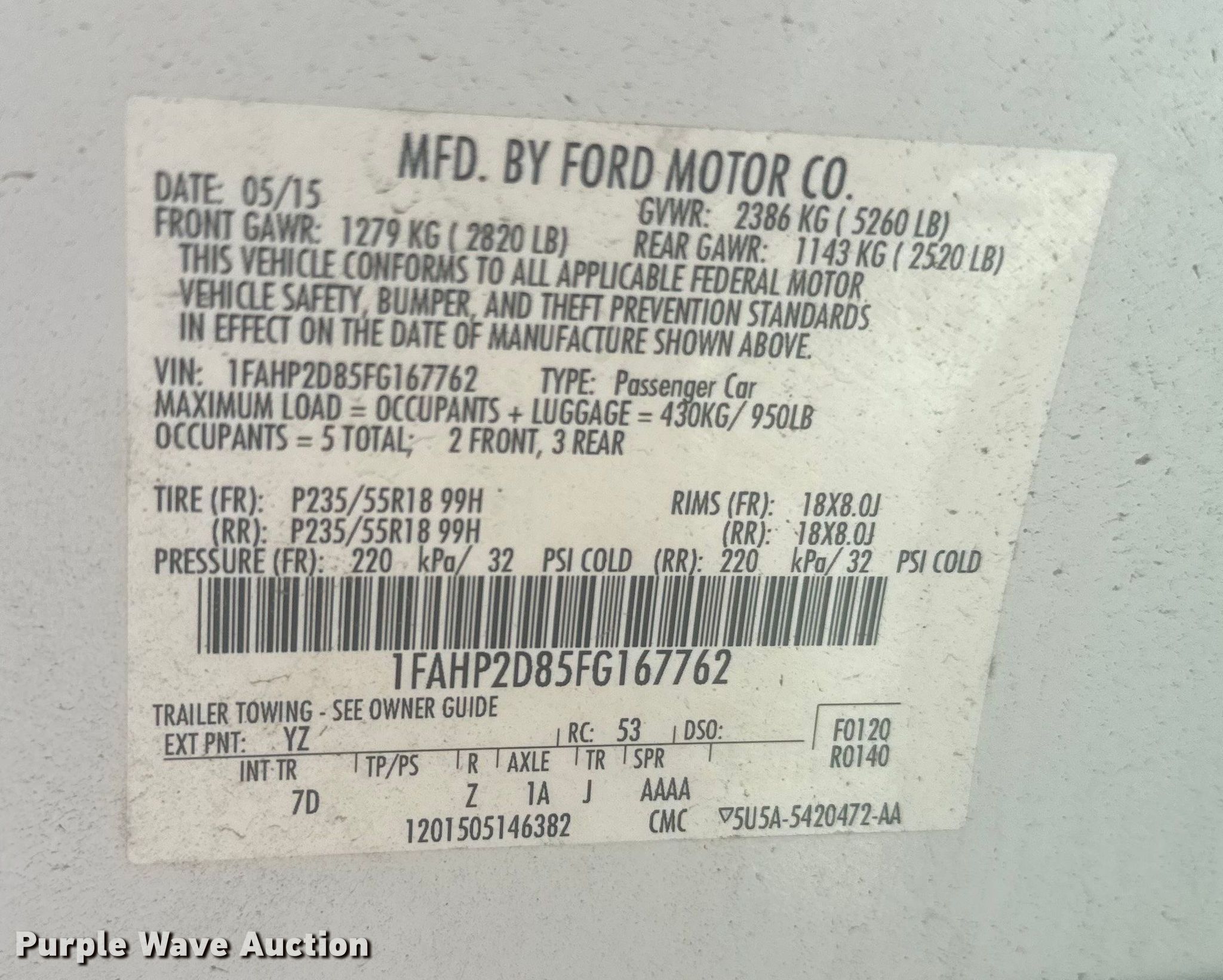 - VIN: 1FAHP2D85FG167762