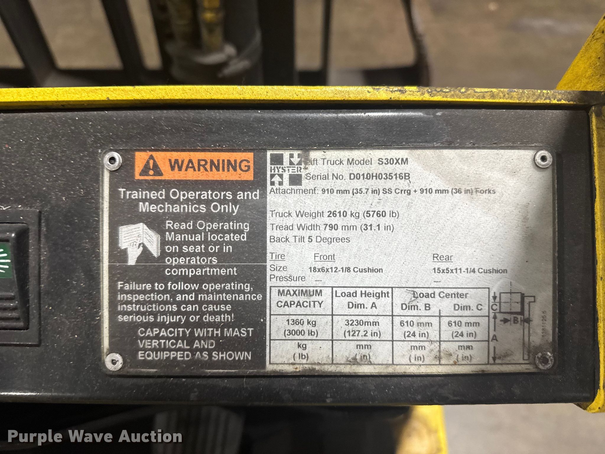 Purple Wave is selling a used Warehouse Forklift in Kansas. This item is a Hyster S30XM forklift with the following: Hours: Unknown, Serial: D010H03516B